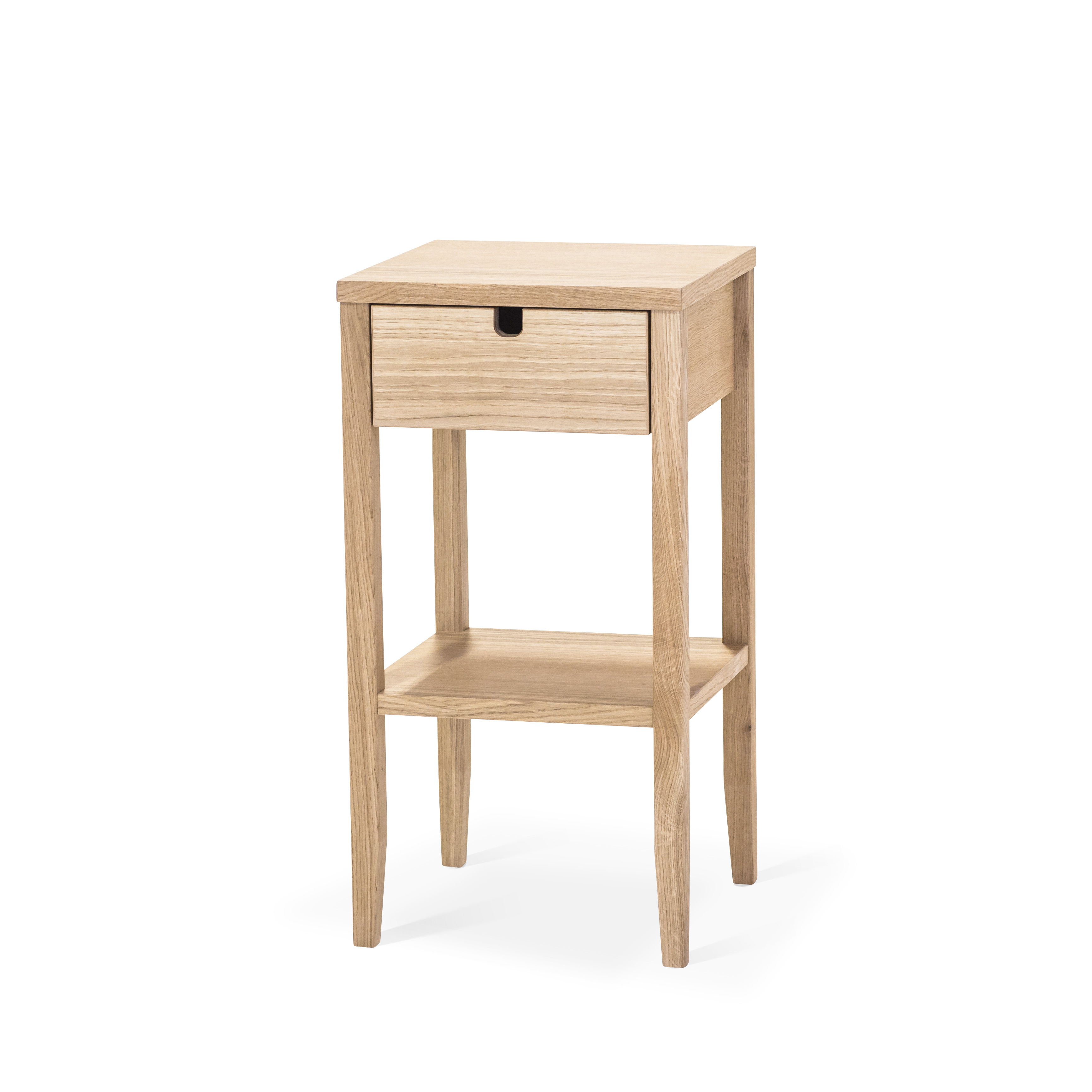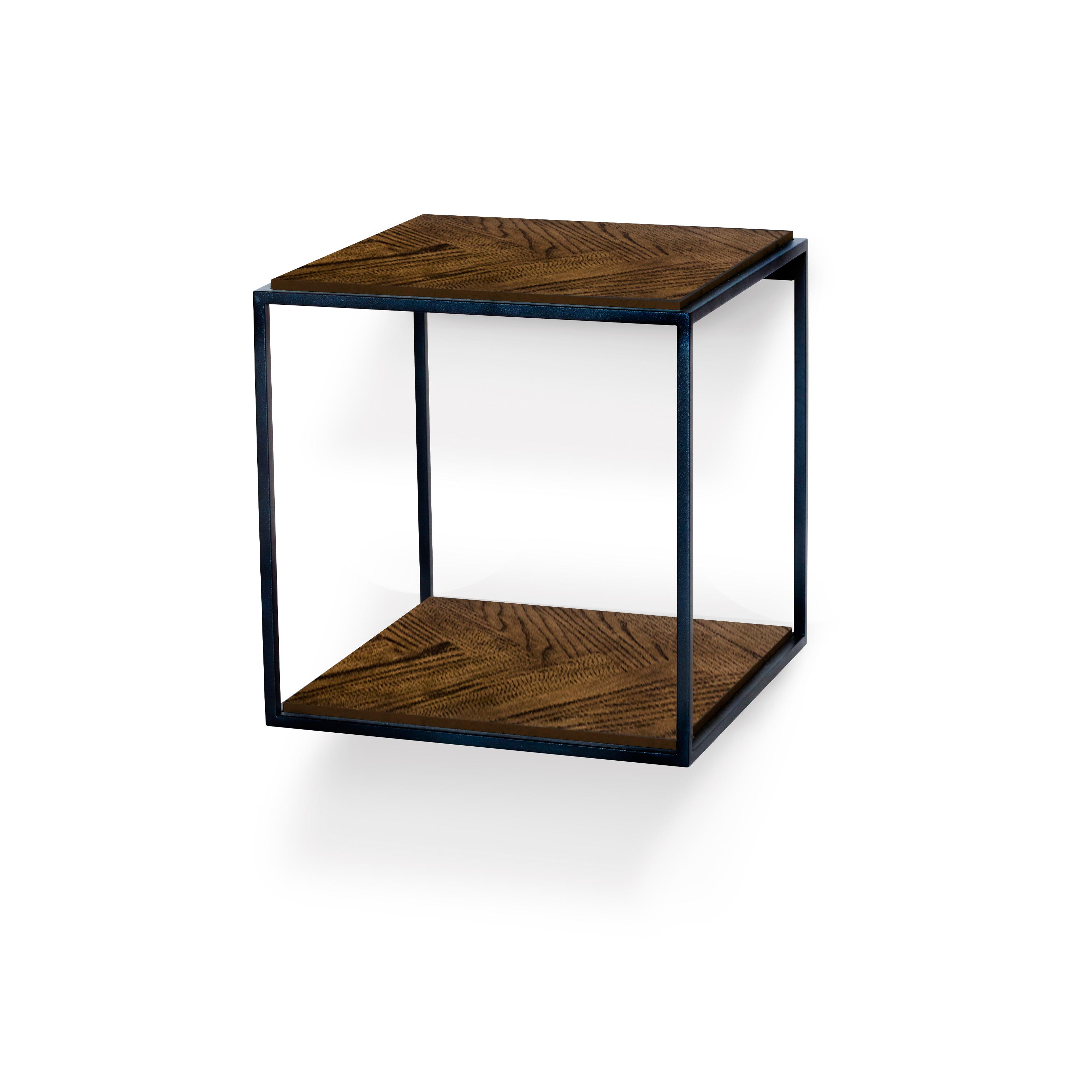 Lime sängbord 34×34 cm brunbetsad ask fiskben/svart metallunderrede