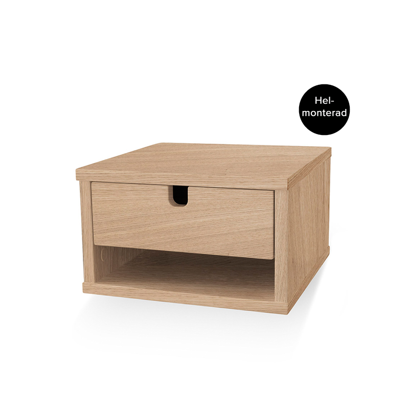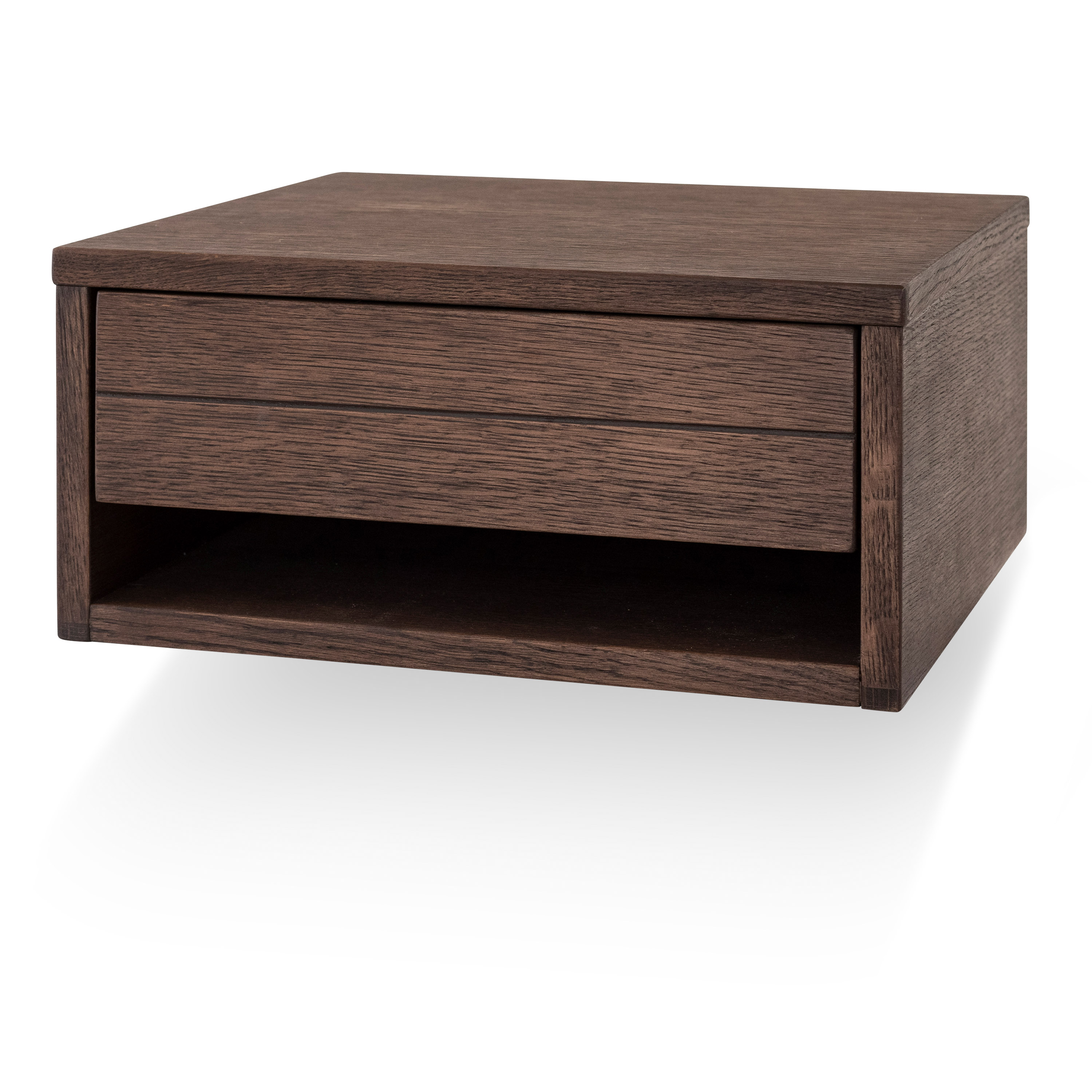 Lime sängbord vägghängt 34×34 cm brunbetsad ask fiskben/svart metallun