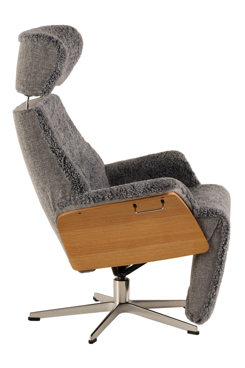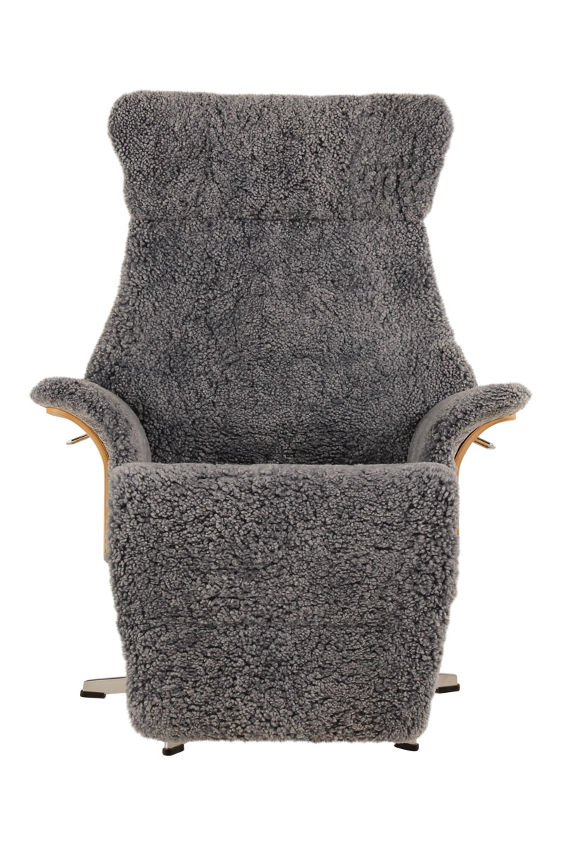 Air är en fåtölj med hög komfort och mysfaktor i fårskinn.