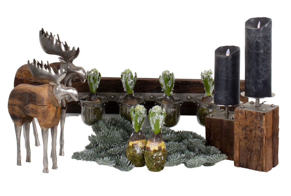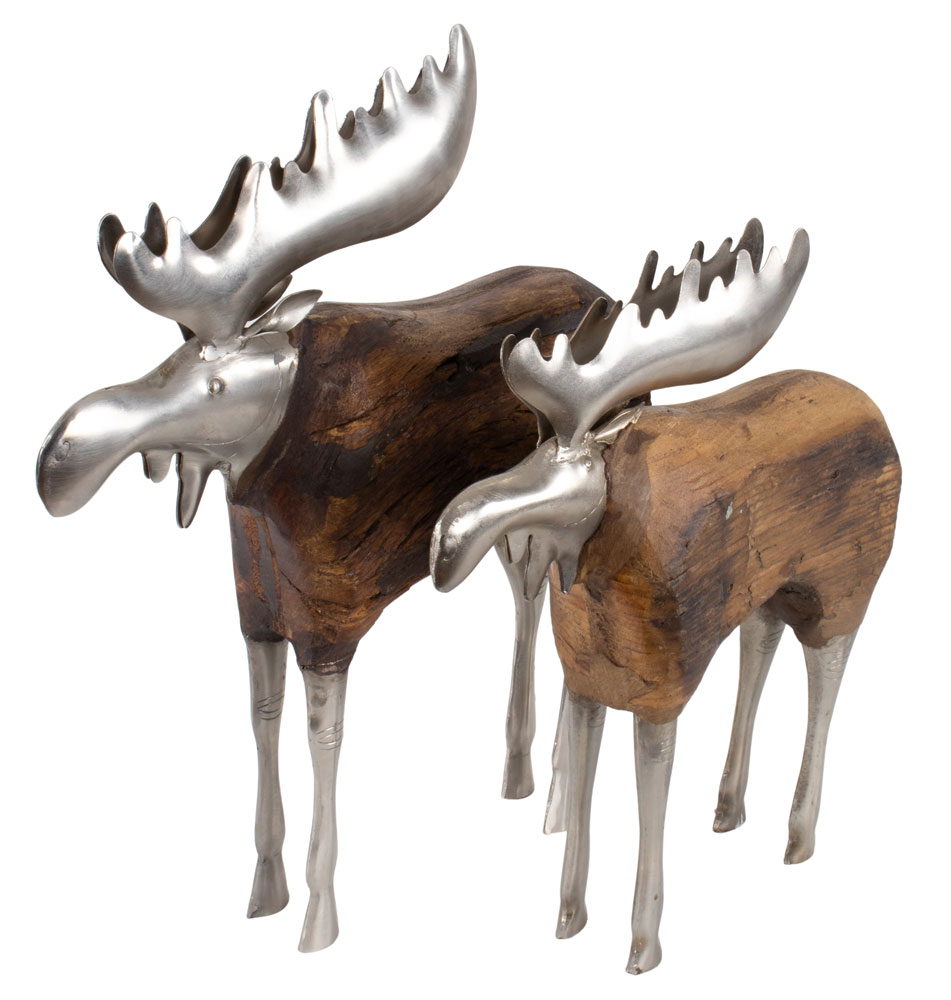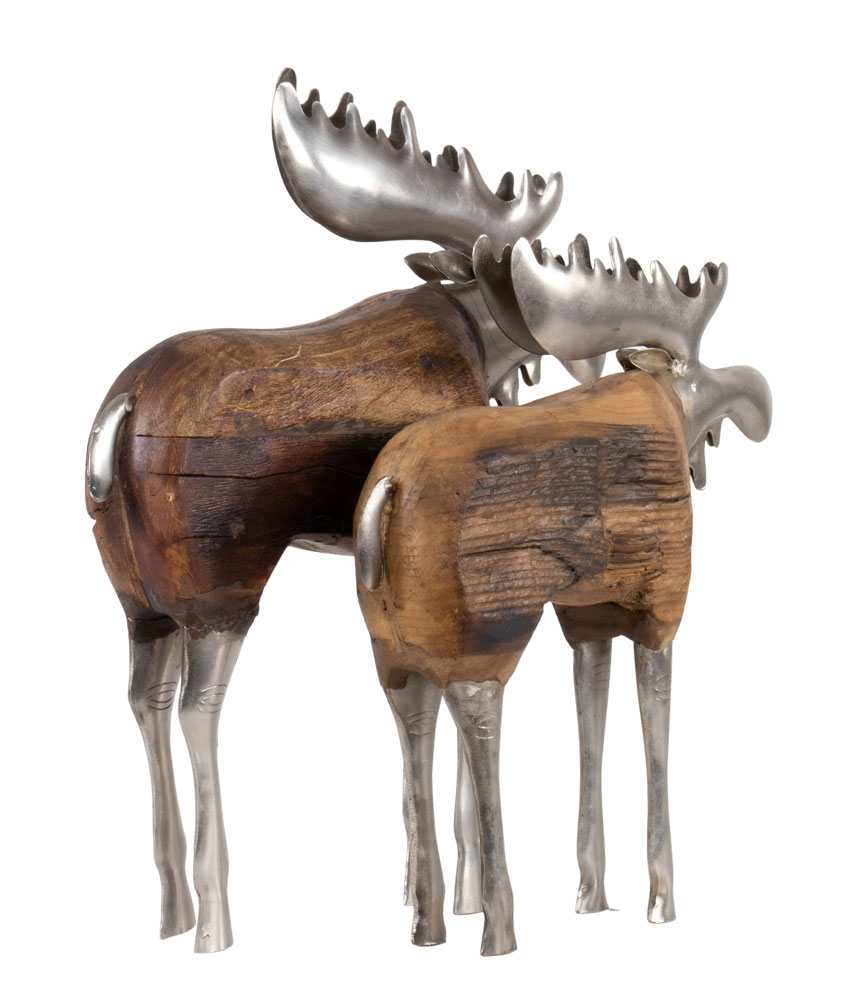 Prydnadsälg i återvunnet trä och järn.