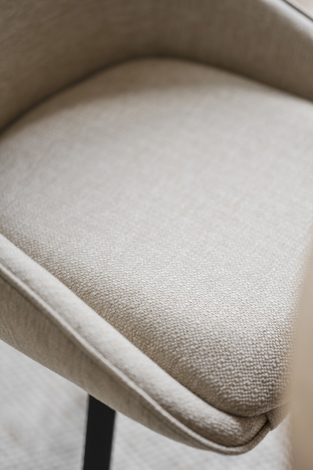 Populära Alison stol med underrede som har snurrfunktion. Här syns den i ett tåligt ljusbeige tyg och med ben i pulverlackad svart metall. Alison har en stoppad sits med hög sittkomfort i kupad design och ben med snurrfunktion i 360 grader. Stolen passar perfekt runt matbordet men även som udda stol till skrivbordet. Alison är FSC®-certifierad och finns även i andra jordnära färger.