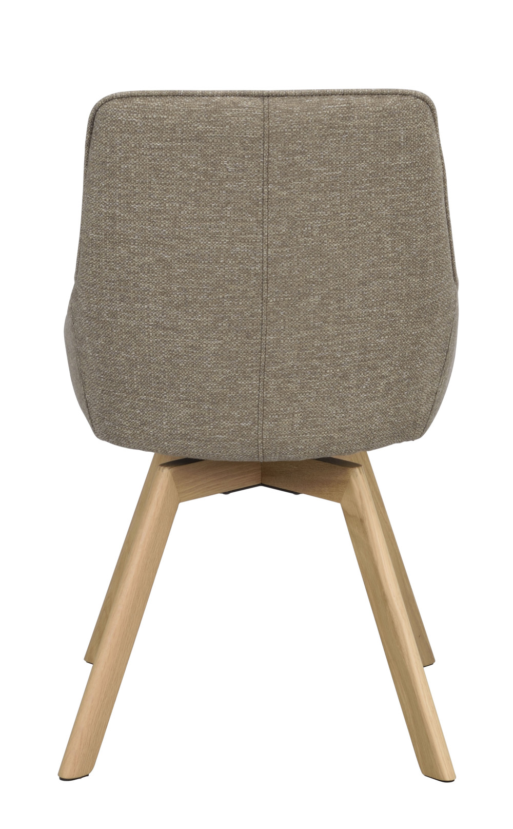 Populära Alison stol med träunderrede och snurrfunktion. Här syns den i en mörkbeige textil och med ben i lackad ek. Alison har en stoppad sits med hög sittkomfort i kupad design och ben med snurrfunktion i 360 grader. Stolen passar perfekt runt matbordet men även som udda stol till skrivbordet. Alison är FSC®-certifierad och finns även i andra jordnära färger. Säljs endast i 2-pack.