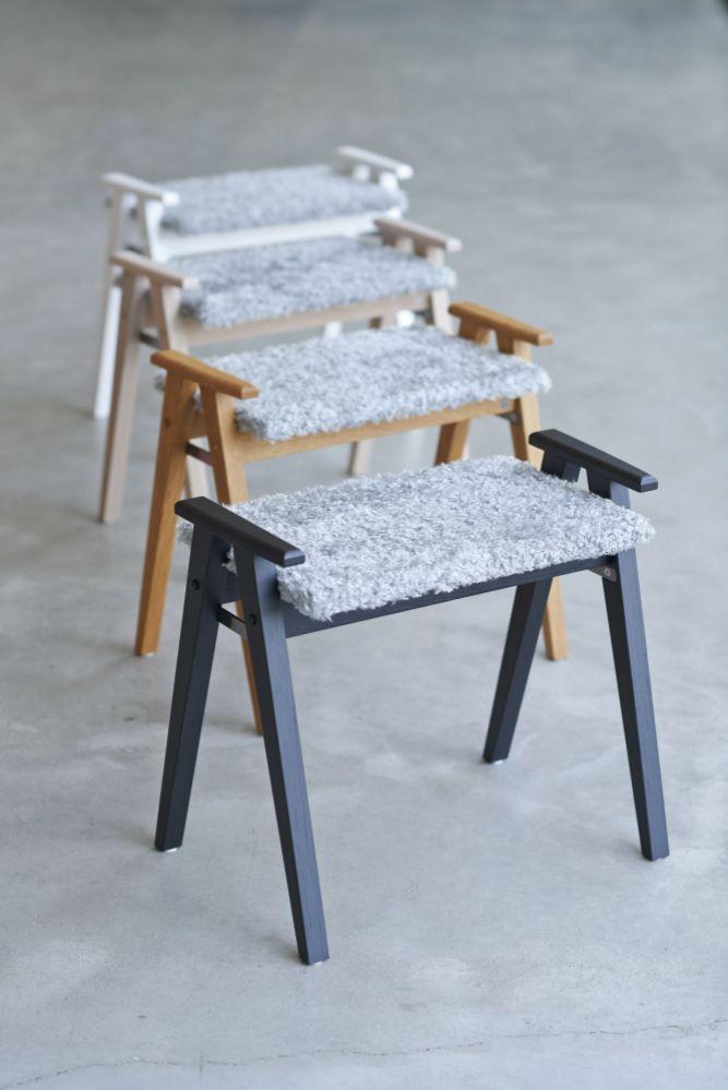 Alme pall finns med ett stort urval nyanser och sex olika klädslar att välja mellan. Pallen är tillverkad i massiv ek och i vitlackad massiv björk, beslag i slipat stål. Sitthöjden på pallen är 46 cm, längd 57 cm och djupet 39 cm.