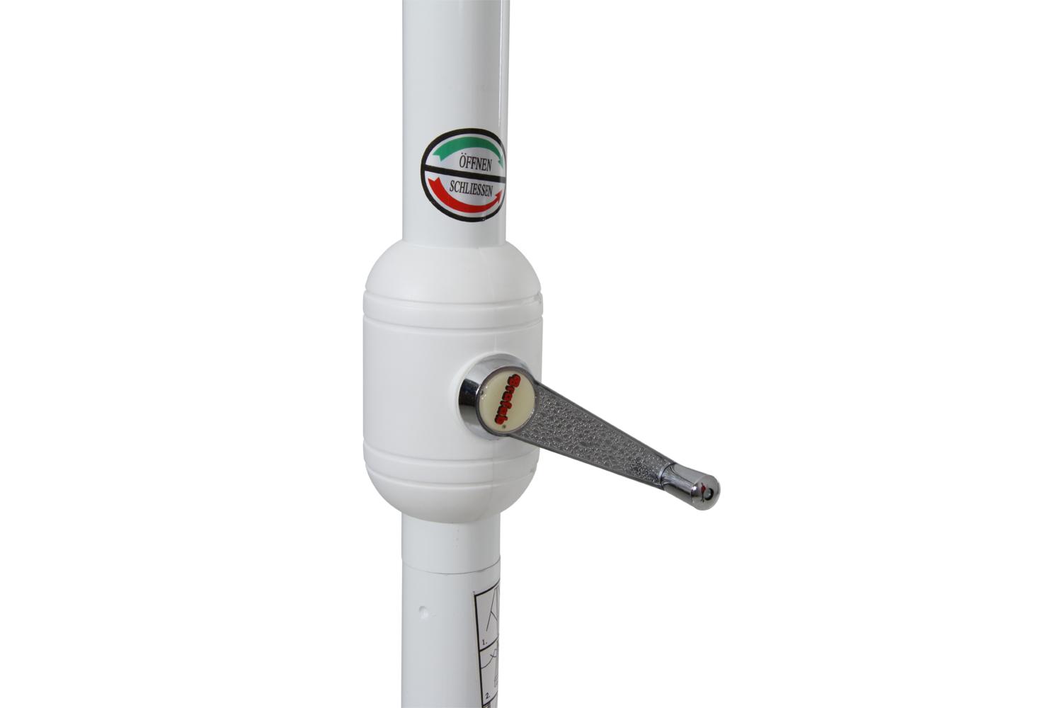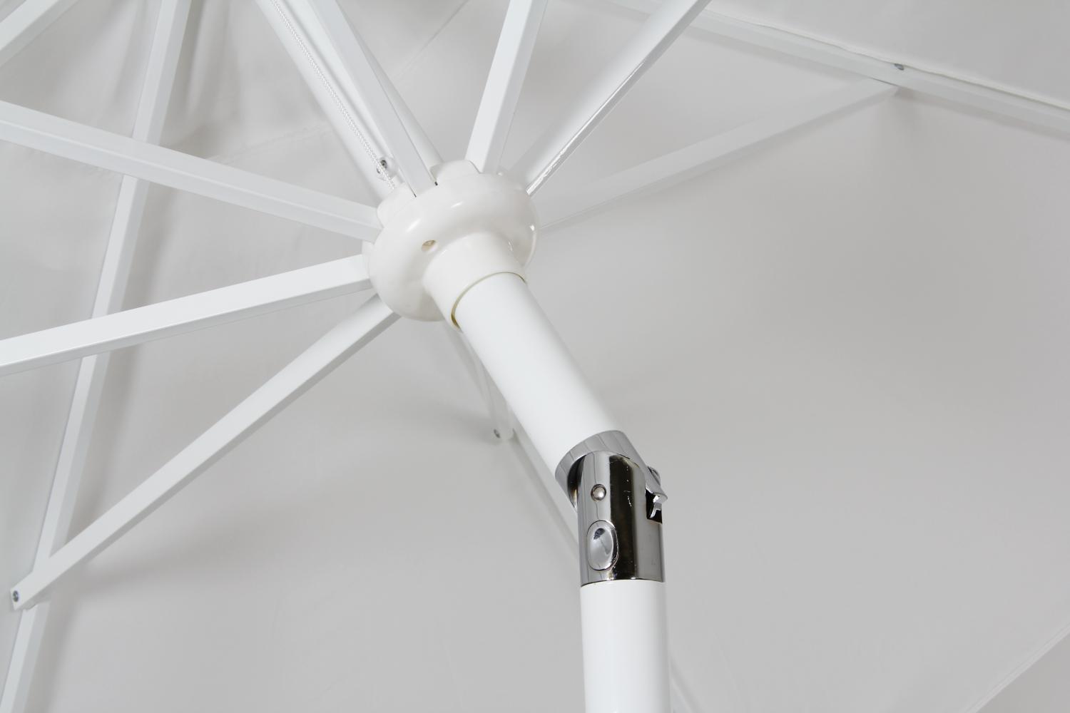 Parasollet har en 2-delad silverfärgad aluminiumstång som har en diameter på 48 mm. Stången har även en vev och push-tilt funktion som gör att man enkelt kan vinkla parasollet. Duken består av en 210 grams olifinväv med ventilationslucka och som hålls uppe av 8st ribbor.