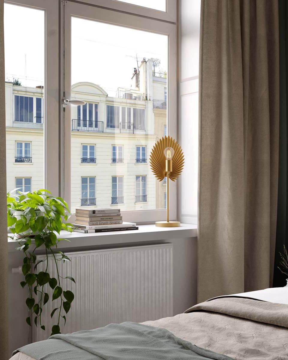 Ta med dig Västindiens skinande solstrålar till ditt hem med bordslampa Aruba. Här får du en inredningsdetalj som sprider värme i ditt hem och som med sitt bladlika utseende anammar naturen inne-trenden. Aruba är en stilsäker och modern lampa, som kommer i en trendsäker metall i två varianter - mattsvart eller matt guld. Dra också fördel av egenskapen att placera ljuskällan antingen synlig (som på bilden), eller vända bort och skapa en ljusstuds på närliggande vägg. Det ger ett effektfullt resultat som ytterligare förstärker naturens värme och strålande sol. För allra vackrast sken rekommenderar vi en ljuskälla i färgen amber. Vill du hellre ha ett starkare, avskalat sken passar en klar ljuskälla bättre. Sockel till ljuskällan är E27 och vi rekommenderar en ljuskälla på 60 mm. Sladden är 200 cm lång och transparent, vilket gör att den smälter in väl mot väggen.