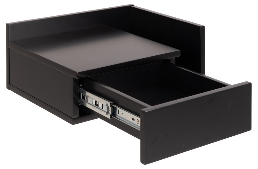 Ashlan fyrkantigt sängbord, skiva, låda och hylla svart UV-målad MDF, med metallskenor, full utdrag, vändbar och väggmontering, 40x32x16,5 cm