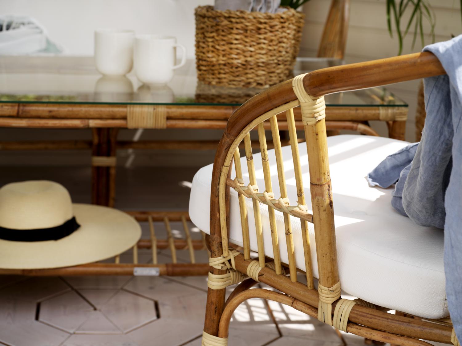 Naturrotting är flätad rotting där skalet har behållits och som därmed har en mer naturlig färg och naturliga oregelbundenheter. Skalet gör dessutom att materialet blir mer beständigt mot väta. Rottingen bör trots detta användas under tak eller inomhus., Tyg för utomhusbruk går utmärkt att rengöra och impregnera med Textile Clean & Protect.Läs mer»