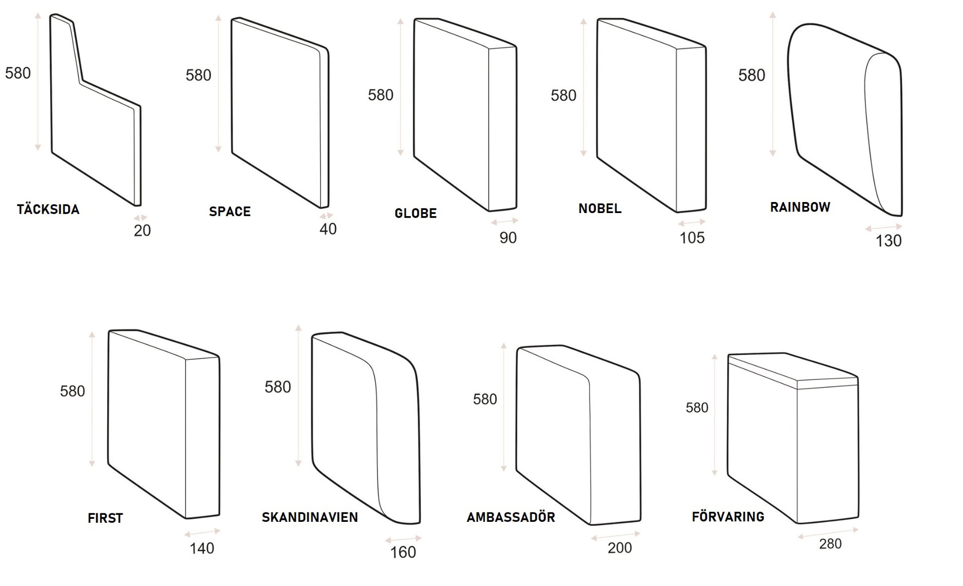 Välj bland totalt nio olika armstöd.