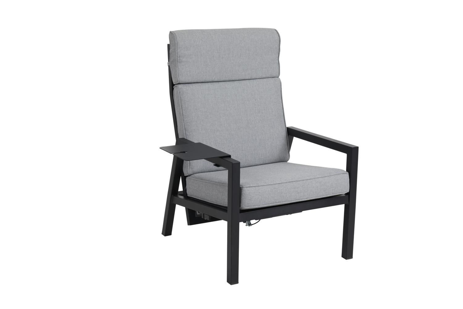 Smart brickbord i svart metall till Belfort-seriens sittmöbler.