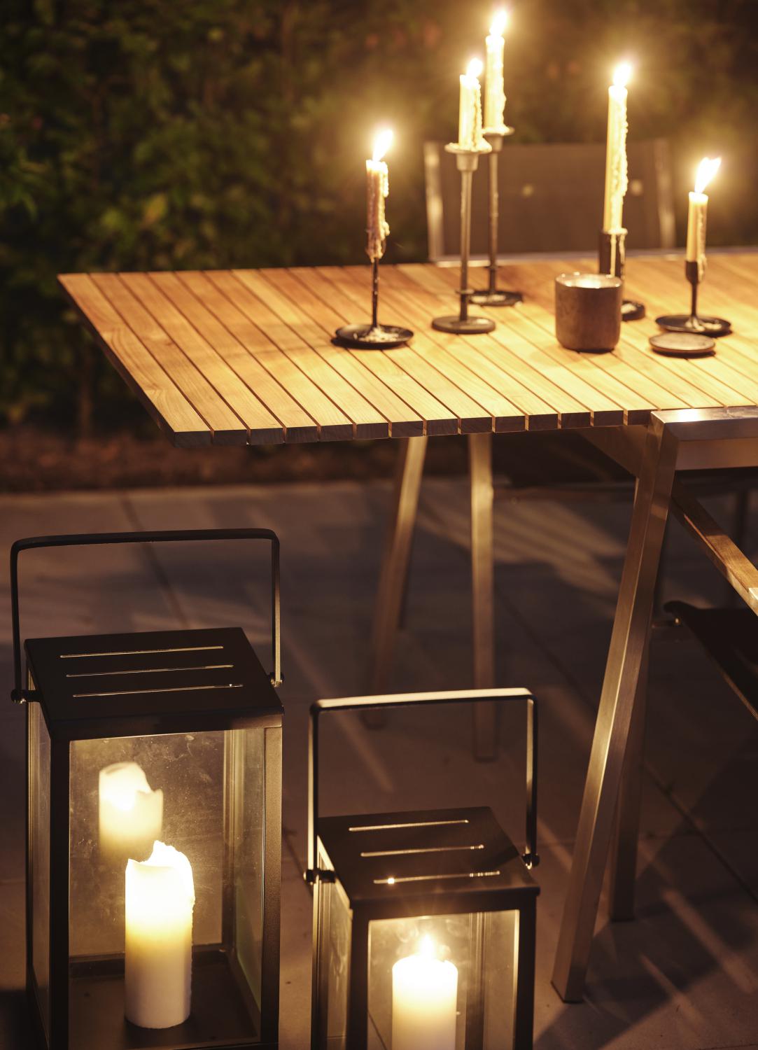 Ljuslykta i aluminium och glas. 27x27x43 cm. Finns i flera olika färger.