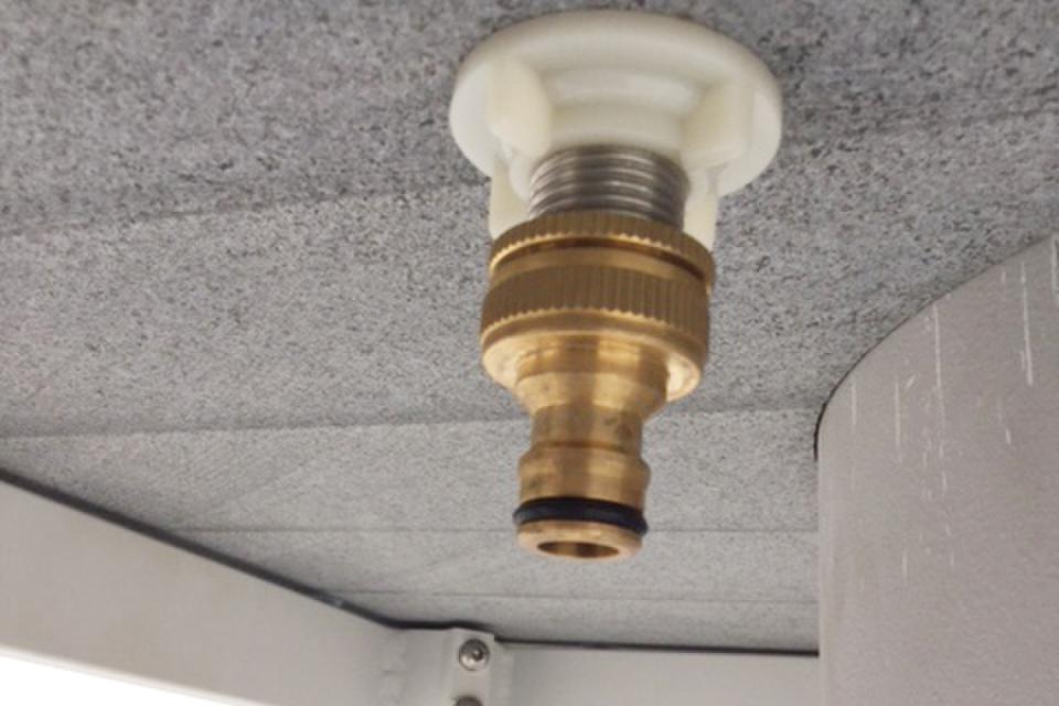 Trädgårdsslangen kopplas enkelt ihop med kranen.