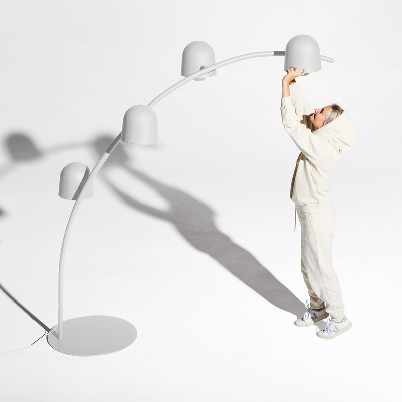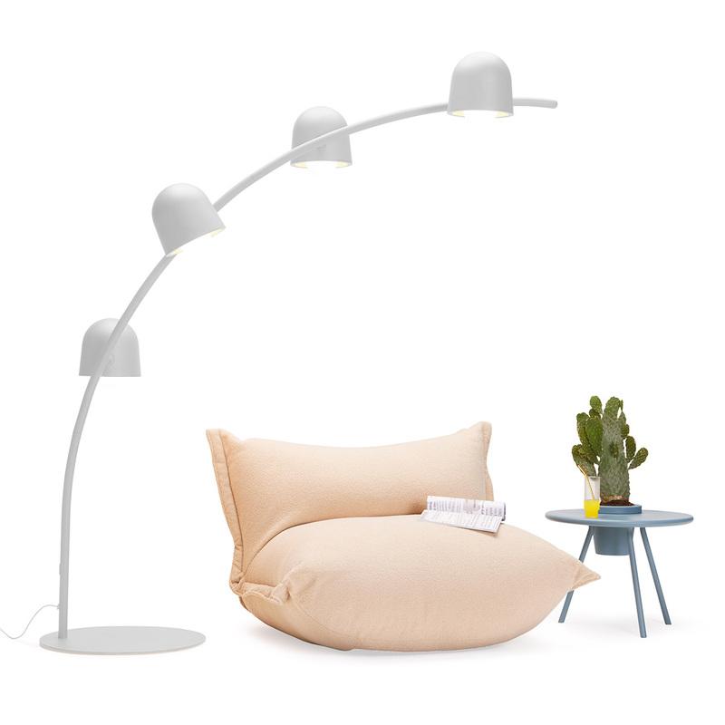 Oväntade möten ute på stan är alltid de bästa. Med Big Lebow kan du ta med den spontaniteten inomhus. Det spelar ingen roll var du ställer den här bågformade golvlampan €“ vid middagsbordet eller soffan, över ett mötesbord eller var du vill €“ Big Lebow lutar sig framåt som den udda gatlampa den är. Den kraftfulla 2,34 meter höga bågen som hör till den här lampan är, precis som den tunga foten, gjord av pulverlackerat stål. De justerbara aluminiumskärmarna gör att du själv kan bestämma vart ljuset ska riktas. Och quiz-knappen? Det är dimmern. Den här stora golvlampan bugar sig för dig i färgerna anthracite, banana yellow eller light grey. Två Big Lebow kan kopplas ihop med ett anslutningsdon för att skapa en komplett båge.