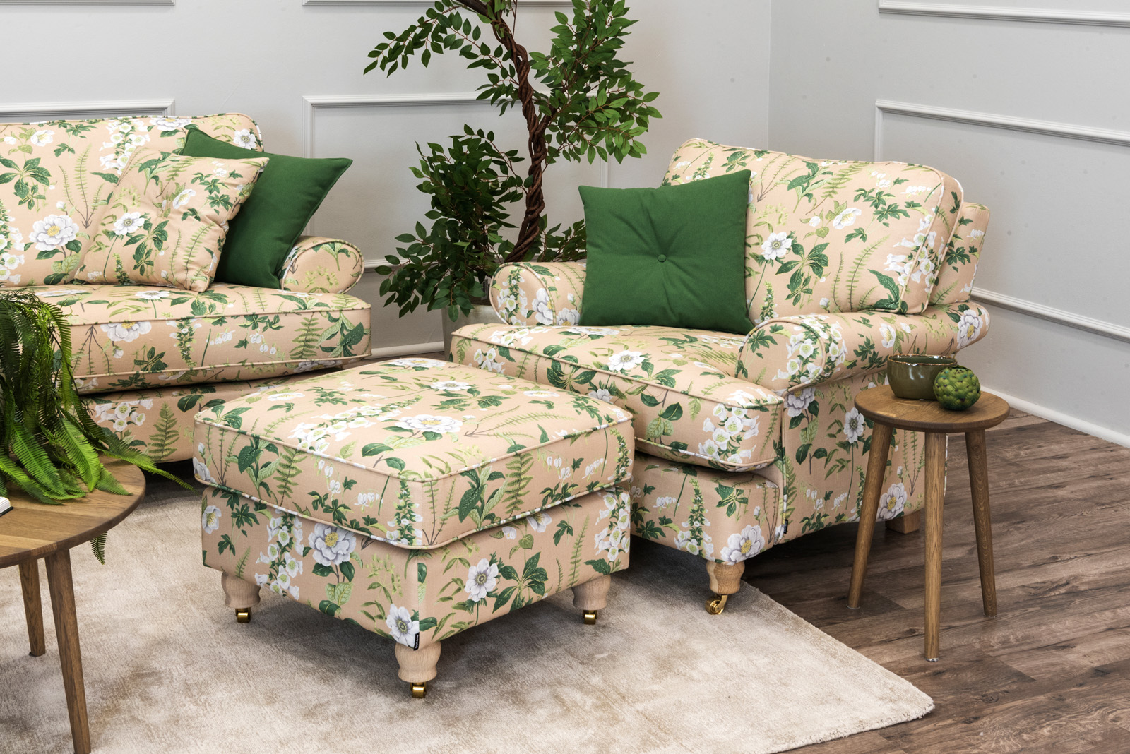 Björkö här klädd i tyget Floren Linen Sand är även en fröjd för ögat.