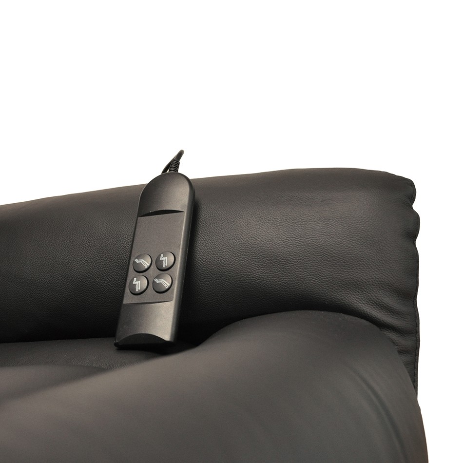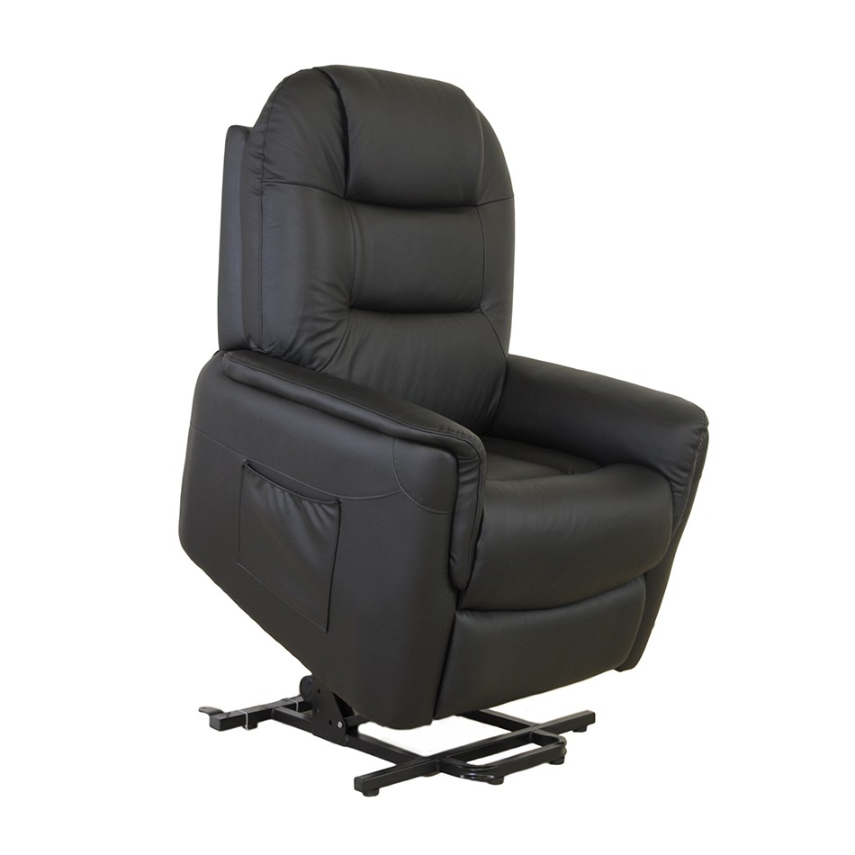 Man kan luta sig tillbaka och fälla ut benen men fåtöljen har även en lift up-funktion som gör det lättare att ta sig upp.