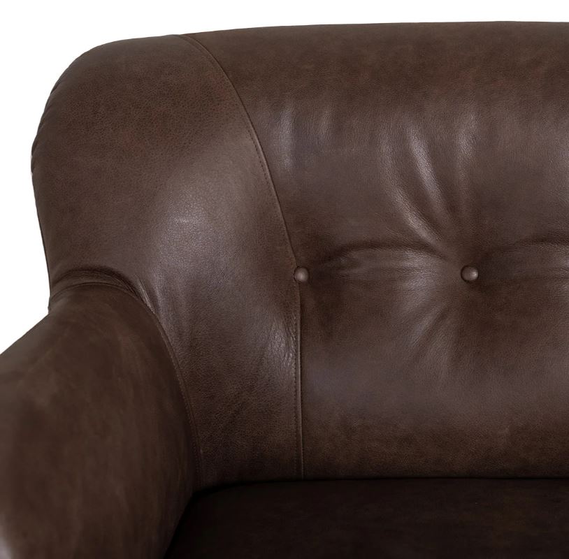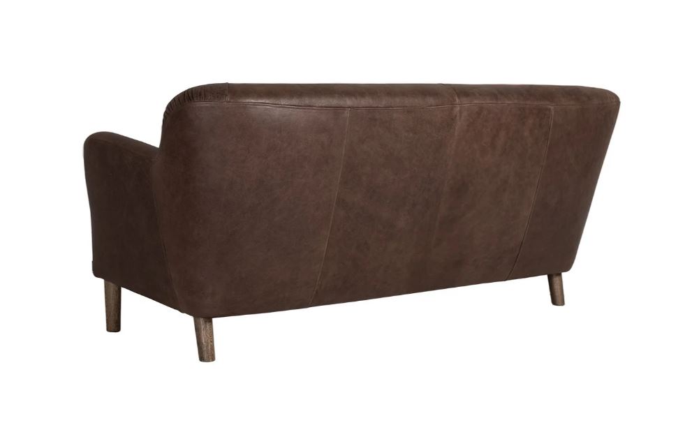 Carolina är en nätt 3-sitssoffa i läder med pikerad rygg och träben.