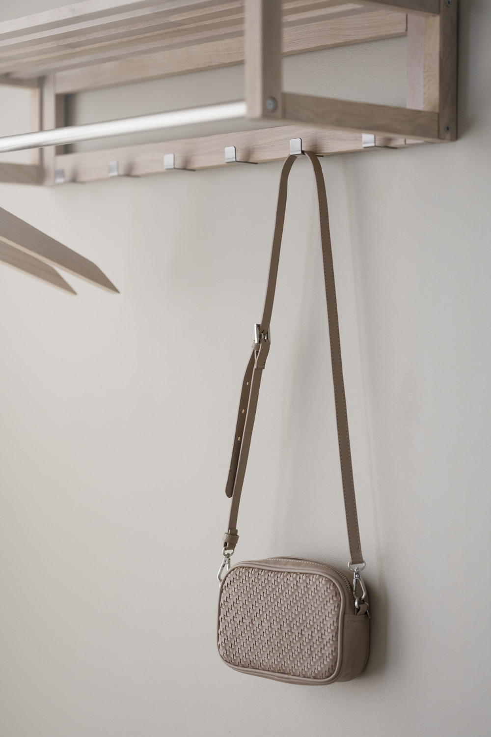 Confetti hatthylla massiv och vitpigmenterad ek. Hatthyllan är både praktisk och modern med snygga krokar i metall. Hatthyllan ingår i hallserien Confetti.