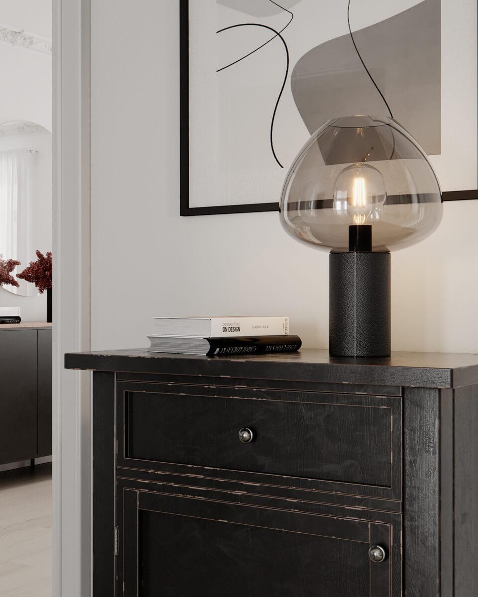 Cozy bordslampa finns i färgerna grå och konjak på glaskupan.