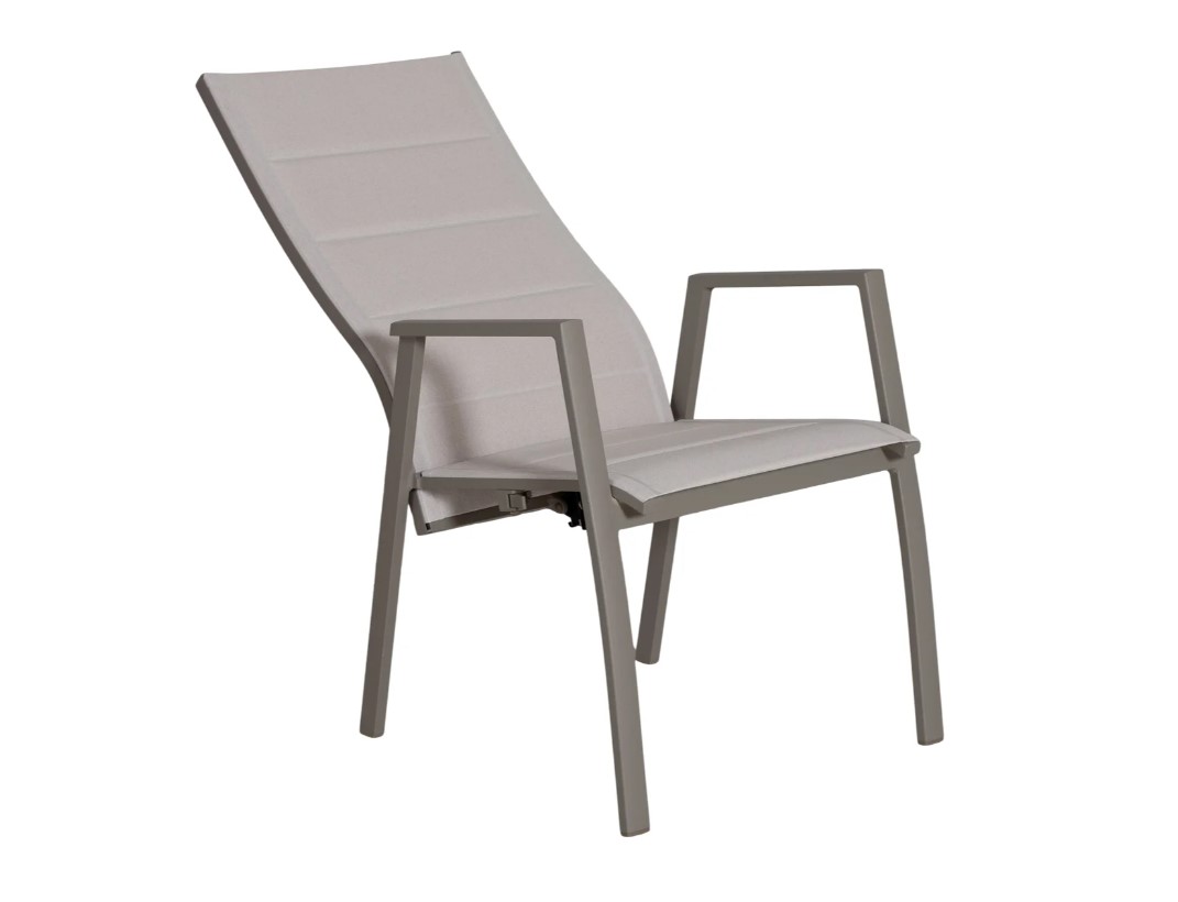 Dallas från Atleve är en serie stilfulla och vädertåliga möbler av lackad aluminium med vadderad rygg och sits för extra hög komfort.