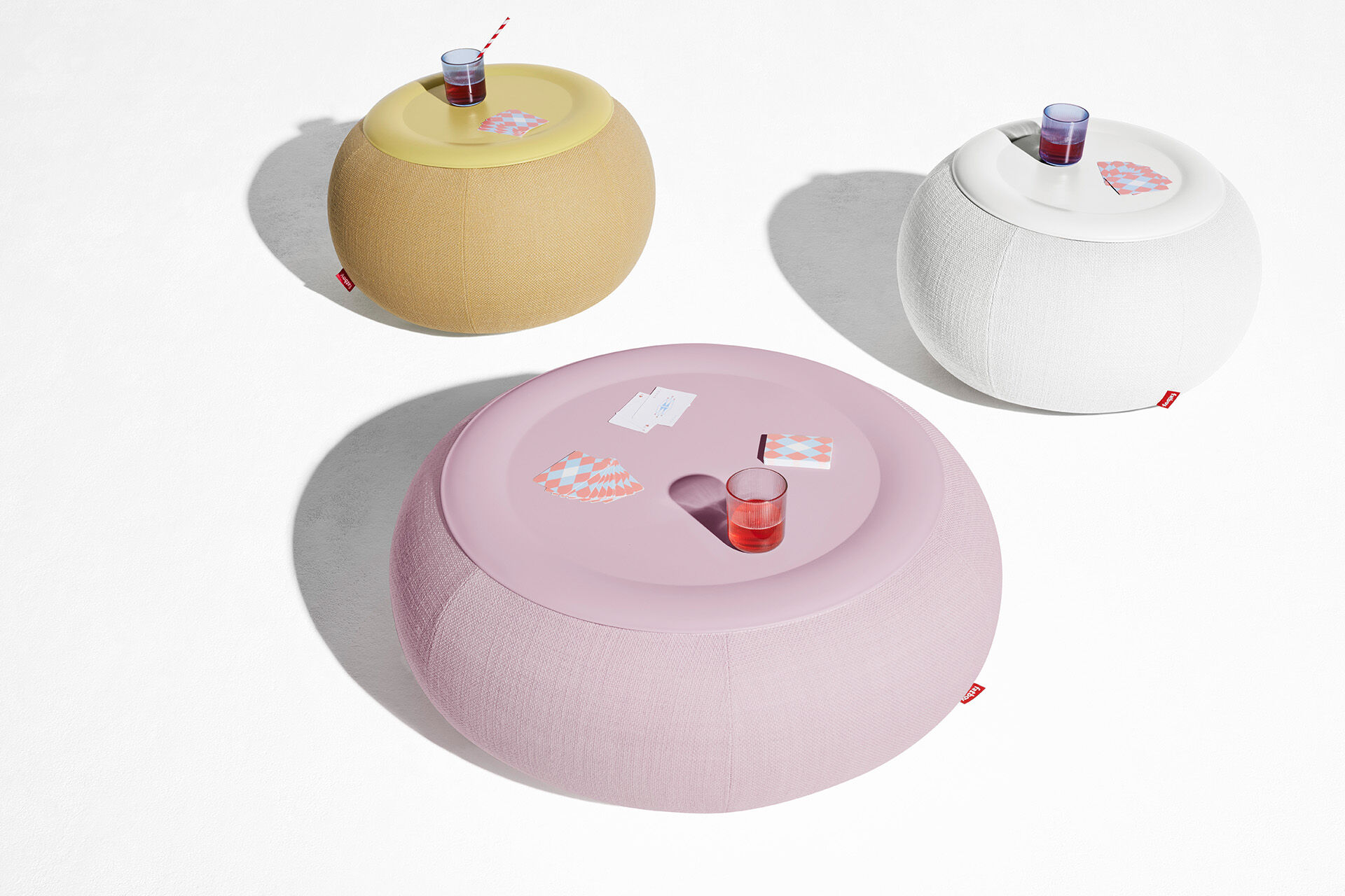 Dumpty är ett lågt, brett uppblåsbart soffbord. Generöst runt och superrobust. Du har aldrig haft en så elegant plats att parkera dina drinkar på. Den reptåliga bordsskivan i stål, pulverlackerad i samma färg som den tygklädda basen, håller allt snyggt på plats. Har du spillt något? Kör bara överdraget i tvättmaskinen. Och eftersom Dumpty är så lätt kan den enkelt flyttas runt. Överdrag: FibreGuard är mycket fläckbeständigt mot en mängd olika vanliga hushållsfläckar. FibreGuard-processen belägger garnet i tillverkningens slutskede, vilket gör att fläckbeständigheten blir effektiv och håller under hela tygets livslängd.