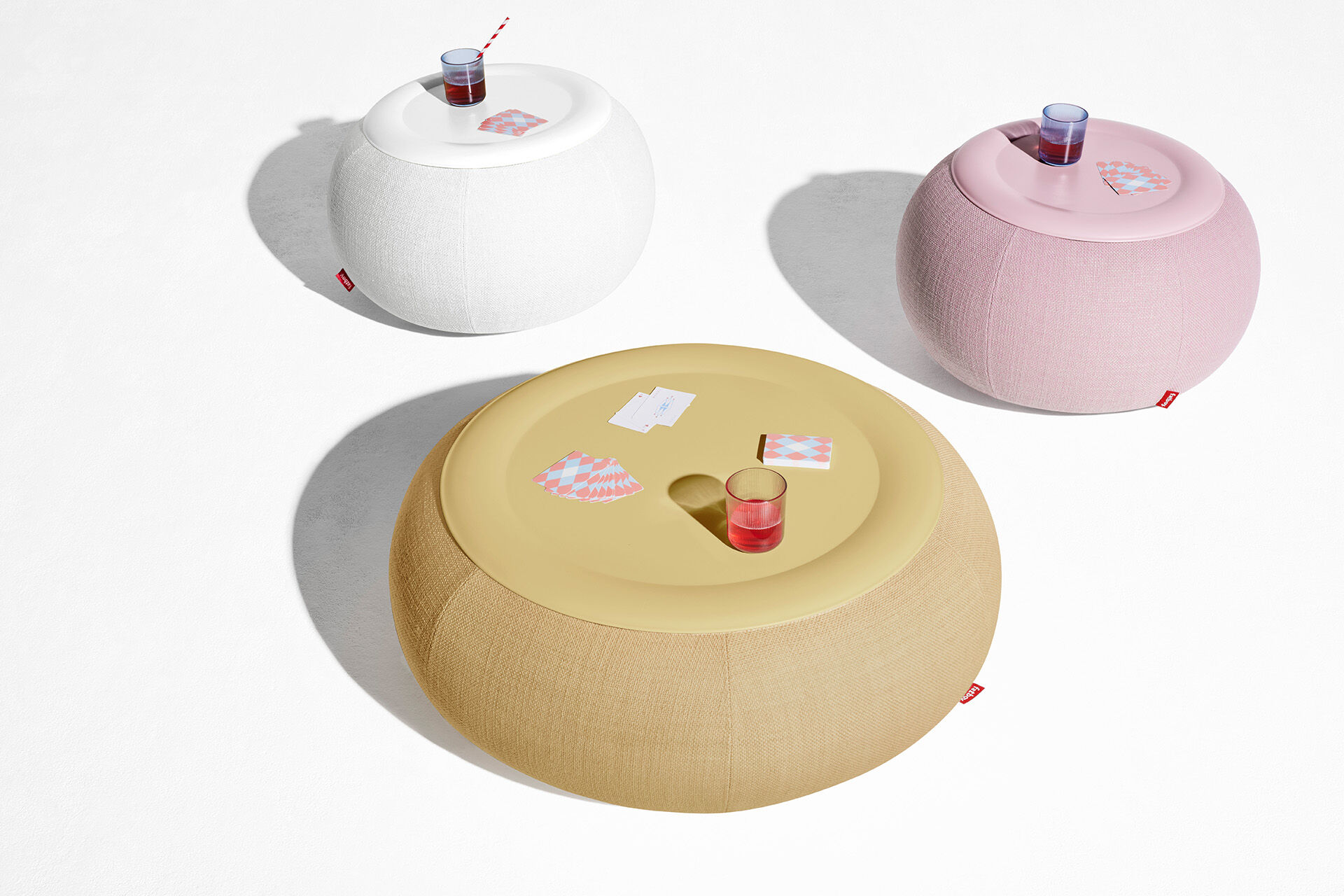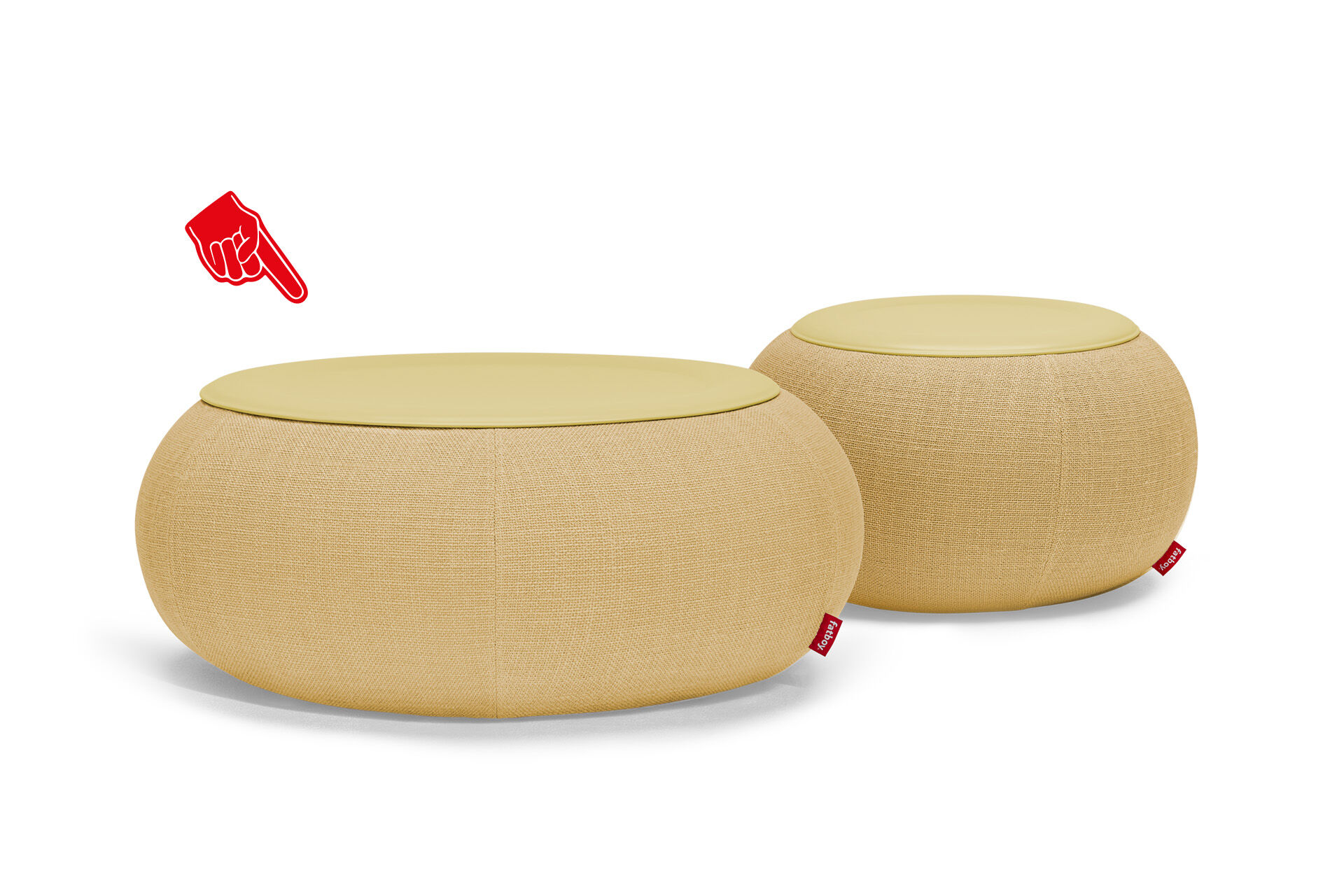 Dumpty är ett lågt, brett uppblåsbart soffbord. Generöst runt och superrobust. Du har aldrig haft en så elegant plats att parkera dina drinkar på. Den reptåliga bordsskivan i stål, pulverlackerad i samma färg som den tygklädda basen, håller allt snyggt på plats. Har du spillt något? Kör bara överdraget i tvättmaskinen. Och eftersom Dumpty är så lätt kan den enkelt flyttas runt. Överdrag: FibreGuard är mycket fläckbeständigt mot en mängd olika vanliga hushållsfläckar. FibreGuard-processen belägger garnet i tillverkningens slutskede, vilket gör att fläckbeständigheten blir effektiv och håller under hela tygets livslängd.