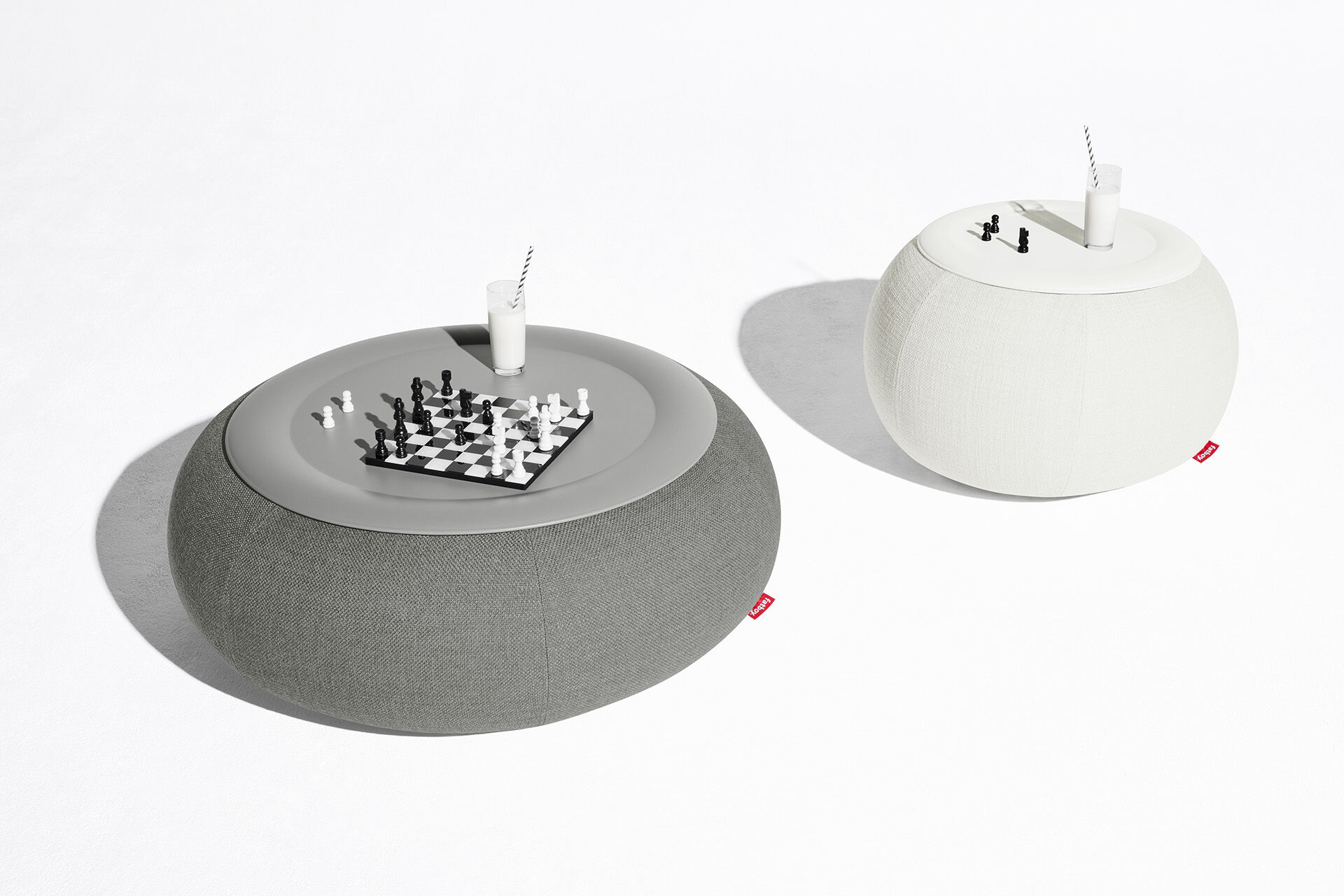 Dumpty är ett lågt, brett uppblåsbart soffbord. Generöst runt och superrobust. Du har aldrig haft en så elegant plats att parkera dina drinkar på. Den reptåliga bordsskivan i stål, pulverlackerad i samma färg som den tygklädda basen, håller allt snyggt på plats. Har du spillt något? Kör bara överdraget i tvättmaskinen. Och eftersom Dumpty är så lätt kan den enkelt flyttas runt. Överdrag: FibreGuard är mycket fläckbeständigt mot en mängd olika vanliga hushållsfläckar. FibreGuard-processen belägger garnet i tillverkningens slutskede, vilket gör att fläckbeständigheten blir effektiv och håller under hela tygets livslängd.