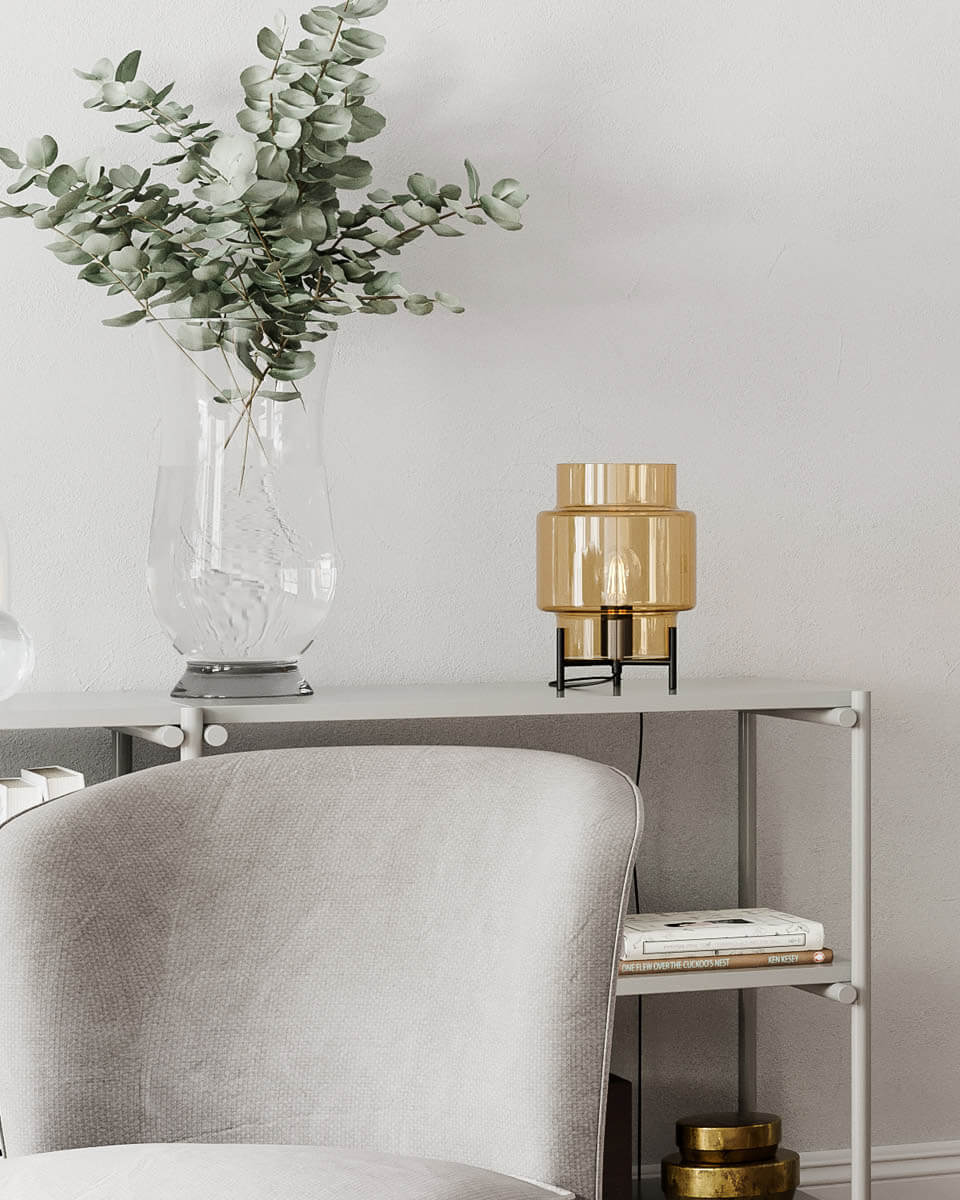 Ebbot är vår fantastiska egendesignade bordslampa som finns i två färger; amber och rökgrå. Båda färgerna har en mattsvart fot och behöver en ljuskälla med sockel E27, förslagsvis i färgen amber för vackrast sken. Ebbot är en modern lampa som ger hemmet minst lika mycket stil och interiör som den ger belysning. Bordslampan finns i två storlekar varpå detta är den mindre modellen som har en höjd på 29 centimeter och en diameter på 20 centimeter. TIPS! Matcha en stor och en liten Ebbot och ställ dem tillsammans för extra wow-känsla!