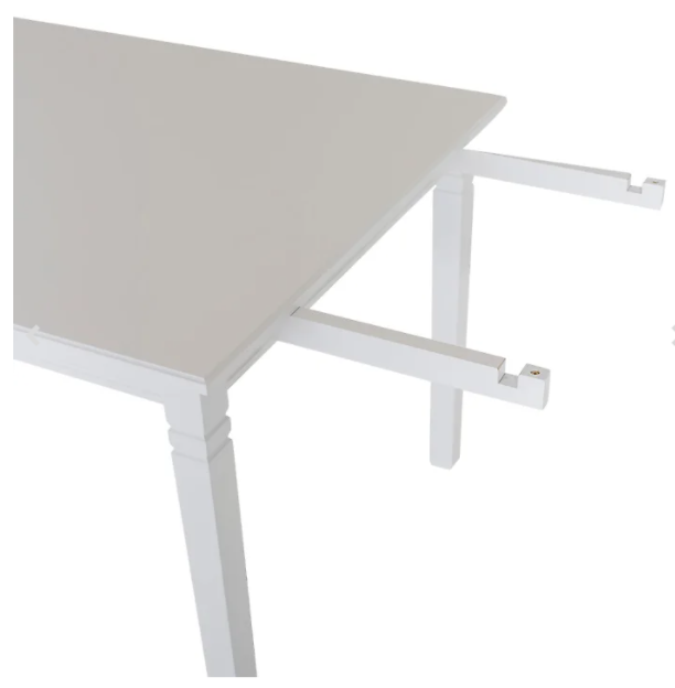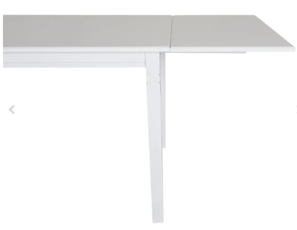 Elvira matbord 140×90 cm i vitlackat trä. Skivan är i MDF och benen är i heveaträ. Tilläggsskiva går att köpa till.