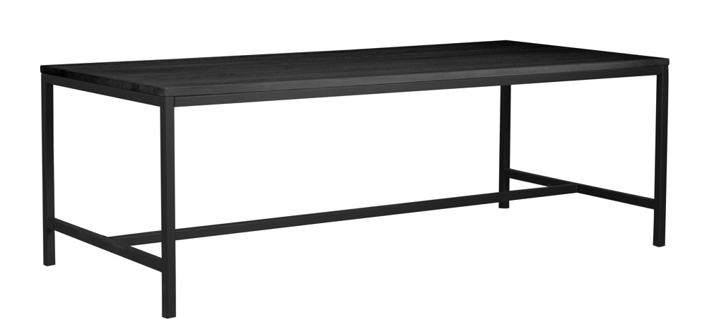 Stort matbord i svartlackerad ask med metallunderrede