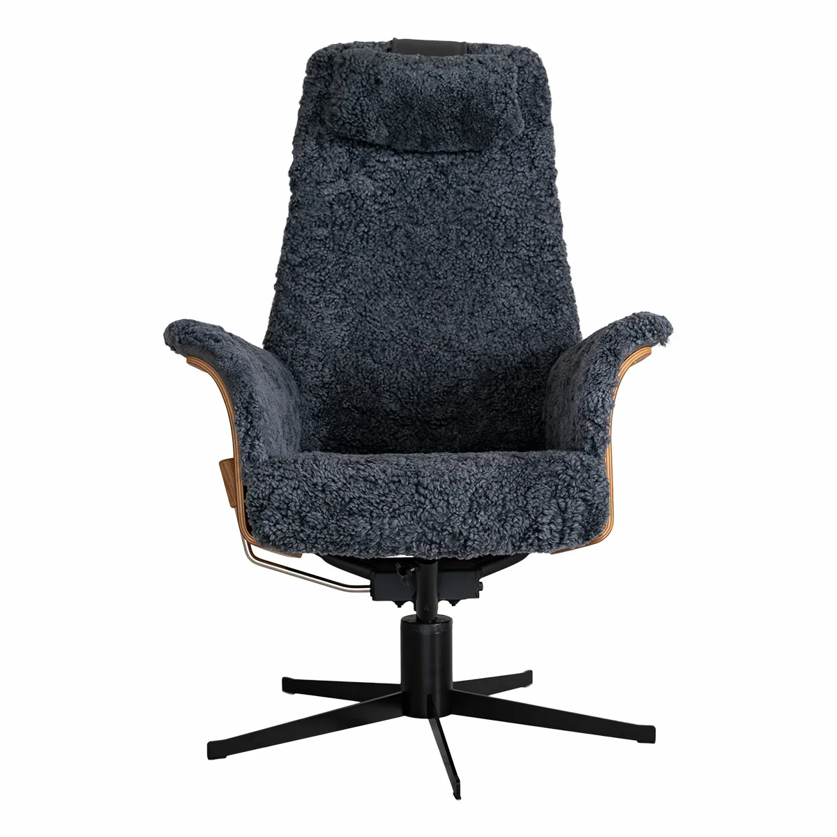 Finess fåtölj finns i en mängd olika fårskinn, läder, träval och underrede än de som visas på bilden. Vill du veta mer om vad fåtöljen har för tillval, tveka inte att höra av dig så hjälper vi dig längst vägen.