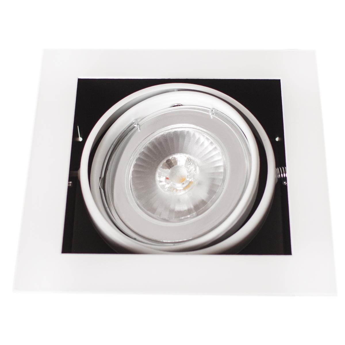Float är en 1-lågig vit spotlight, där ramen effektfullt ligger utanför ljuskällan. Denna spotlight passar inbyggnadshål med mått 17 x 17 cm samt ett inbyggnadsdjup på 12 cm.