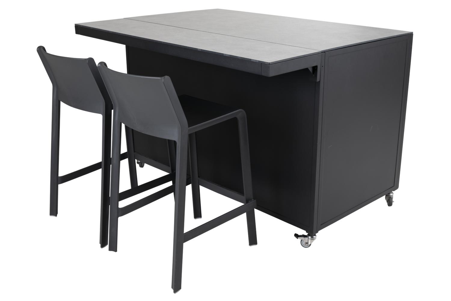 Ett premium utekök i svart aluminium med luckor i teak och topp i högtryckslaminat. Designad för ett modernt boende och med många smarta funktioner. Fornax består av 5 olika enheter som kan sättas ihop på olika sätt till ett komplett och stort utekök. En enhet är förberedd för att lägga till en gasolgrill (OBS! köps separat), en enhet har diskho och vattenkran och en enhet har en slät topp, perfekt som arbetsyta. Alla enheter har rejäla hjul, bakdel/staket och hylla. Som tillbehör finns också en skiva (stor och liten) som kan monteras på till en bardisk. Delen som är förberedd för en gasolgrill har mått för att passa t.ex. Napoleon BILEX485-1, och gasolgrillen köps separat. Bilderna med grillen monterad är enbart för visningssyfte.