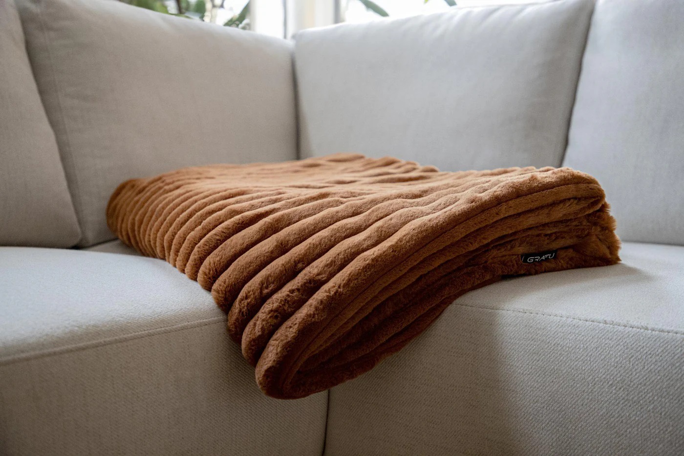 Exklusiv pläd från Grafu som är tjock och silkeslen med fin lyster. Pläden är lika mjuk och varm som den är snygg.
