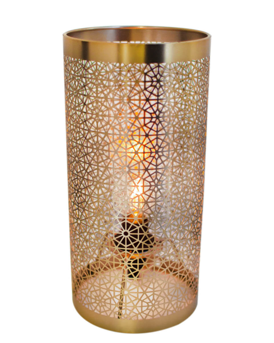 Hermine är vår karismatiska bordslampa som har ett otroligt inbjudande sken. Den varma mässingfärgen ger ett varmt intryck och mönstret ger lampan stark karaktär. Hermine är en serie som även finns som golvlampa, vägglampa och taklampa. Till bordslampan behöver du en ljuskälla med sockel E14, 45 mm. Hermine bordslampa lyfter den enklaste miljö till något alldeles extra.