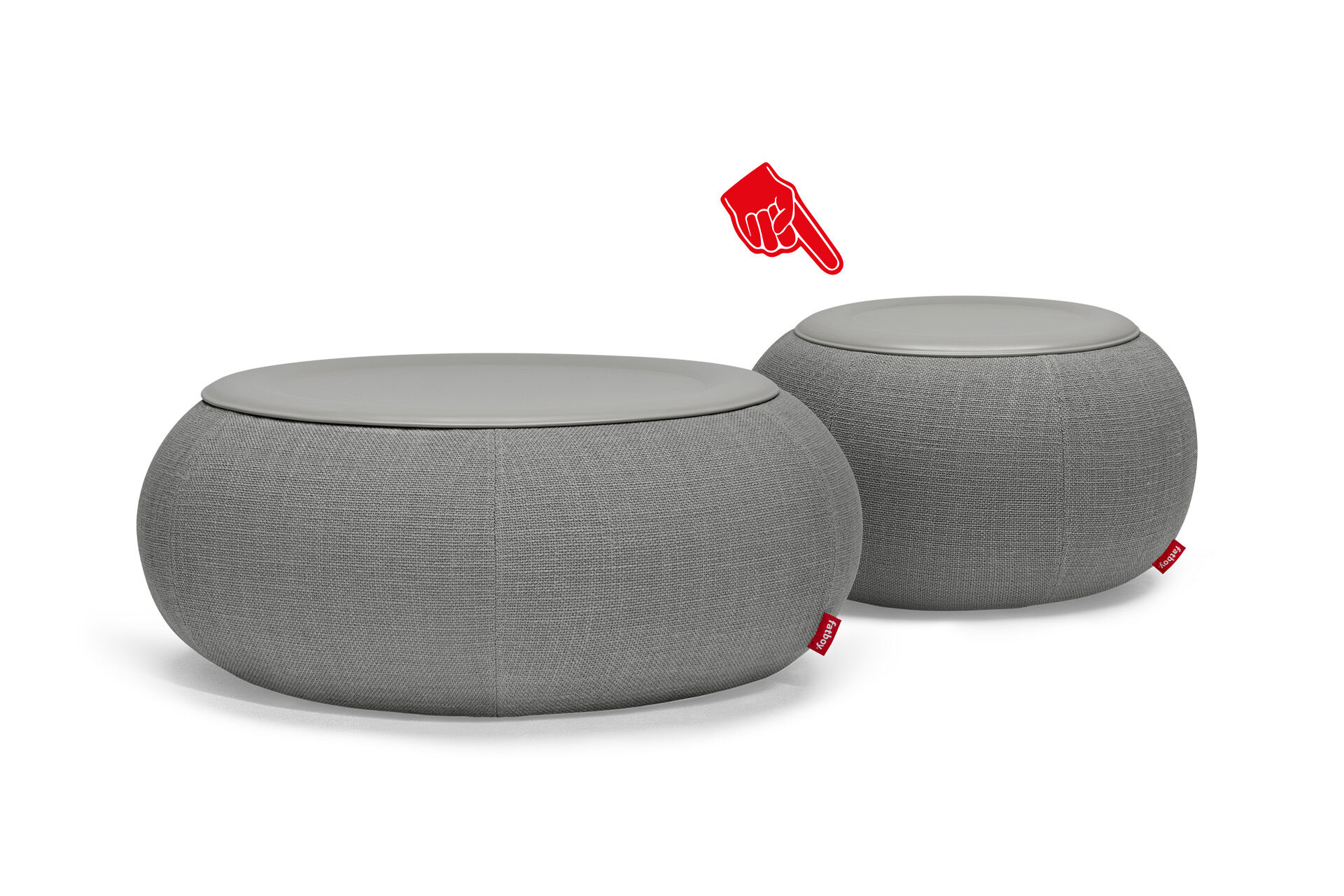 Humpty och Dumpty är uppblåsbara soffbord. Generöst runda, gosigt mjuka och ändå superstabila. Du har aldrig haft en så elegant plats att parkera dina drinkar på. Och tack vare den robusta bordsskivan i stål, pulverlackerad i samma färg som den tygklädda basen, håller allt sig snyggt på plats. Råkade du spilla något? Kör bara överdraget i tvättmaskinen. Och eftersom Humpty och Dumpty är så lätta kan de enkelt flyttas runt. FibreGuard är mycket fläckbeständigt mot en mängd olika vanliga hushållsfläckar. FibreGuard-processen belägger garnet i tillverkningens slutskede, vilket gör att fläckbeständigheten blir effektiv och håller under hela tygets livslängd.