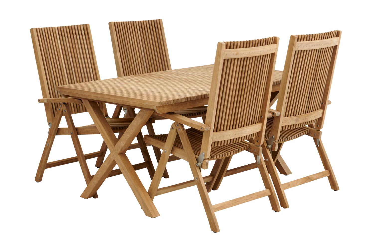 Ställbar, vikbar, snygg och skön. Julita positionsstol i vacker teak med raka linjer passar perfekt både till vila och middagsbjudningar.