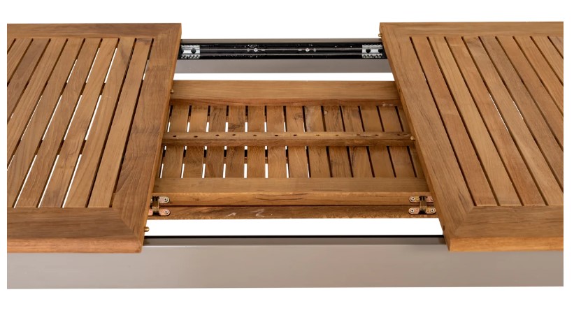 Kiwi utematbord i teak och champagnefärgad aluminium