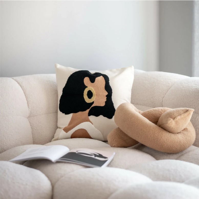 Mönstrat kuddfodral med broderat mönster på framsidan, enfärgad baksida.