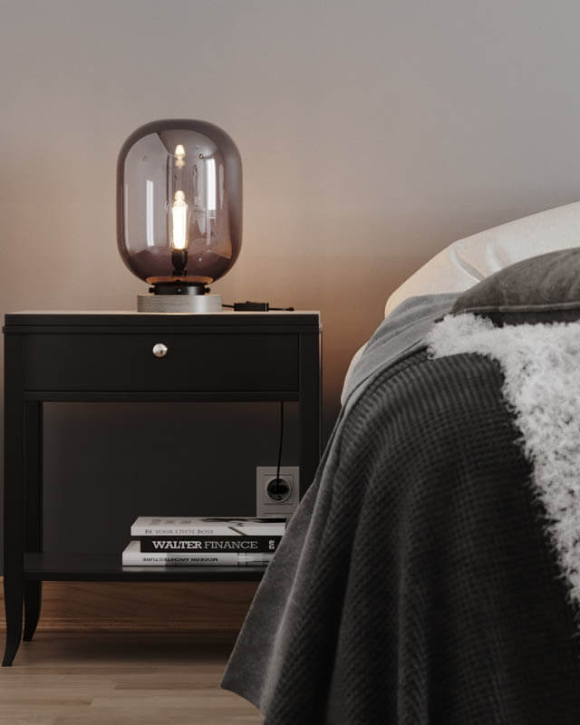 Leola bordslampa har en härlig design. Den spännande kombinationen av metall och rökgrått glas inger ett modernt och tufft intryck. En lättplacerad lampa som ger ett vackert sken. Höjden på lampan är 32 centimeter och diametern mäter 28 centimeter. Till bordslampan behöver du en ljuskälla med sockel E27.