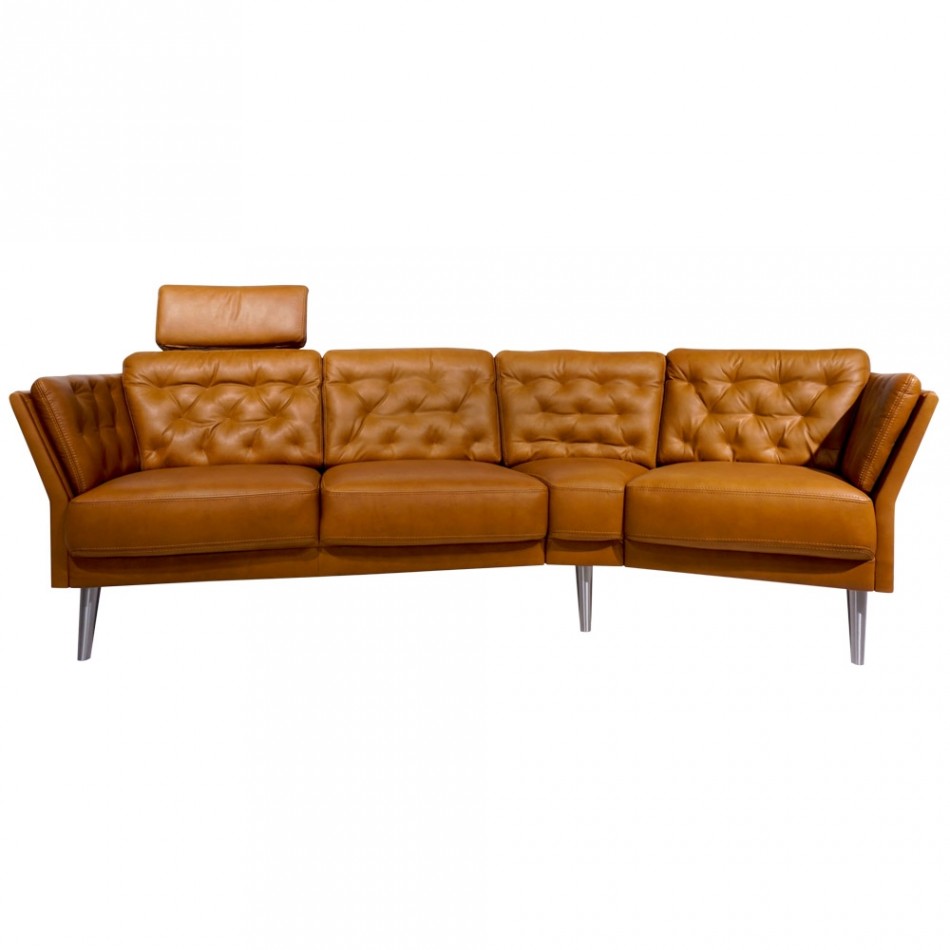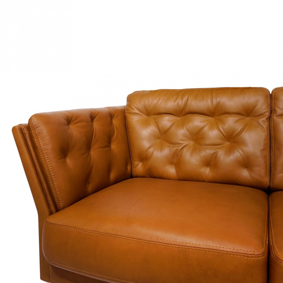 Lyxig modulsoffa i anilinläder med djuphäftade rygg- och armstödsdynor.