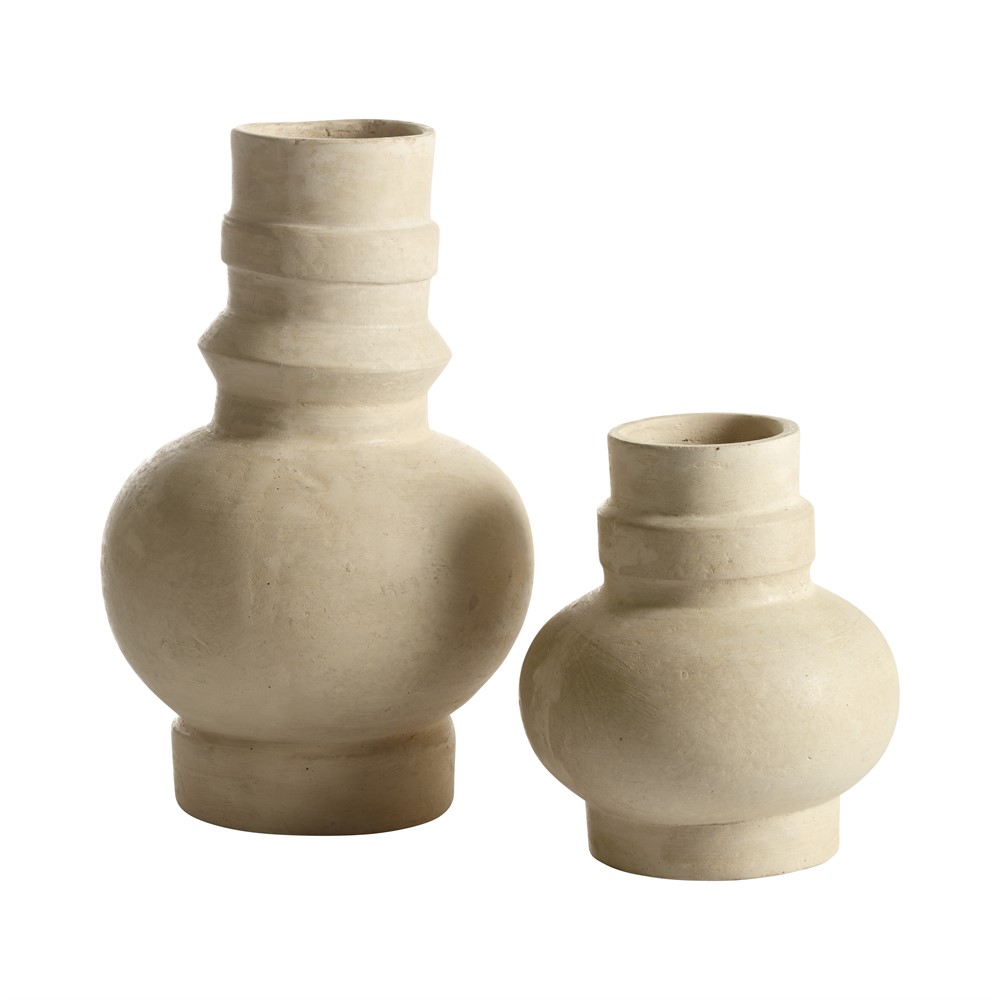 Dekorativ låg vas i papier-maché. Fin med torkade blommor eller blad i. Finns även i en större storlek.
