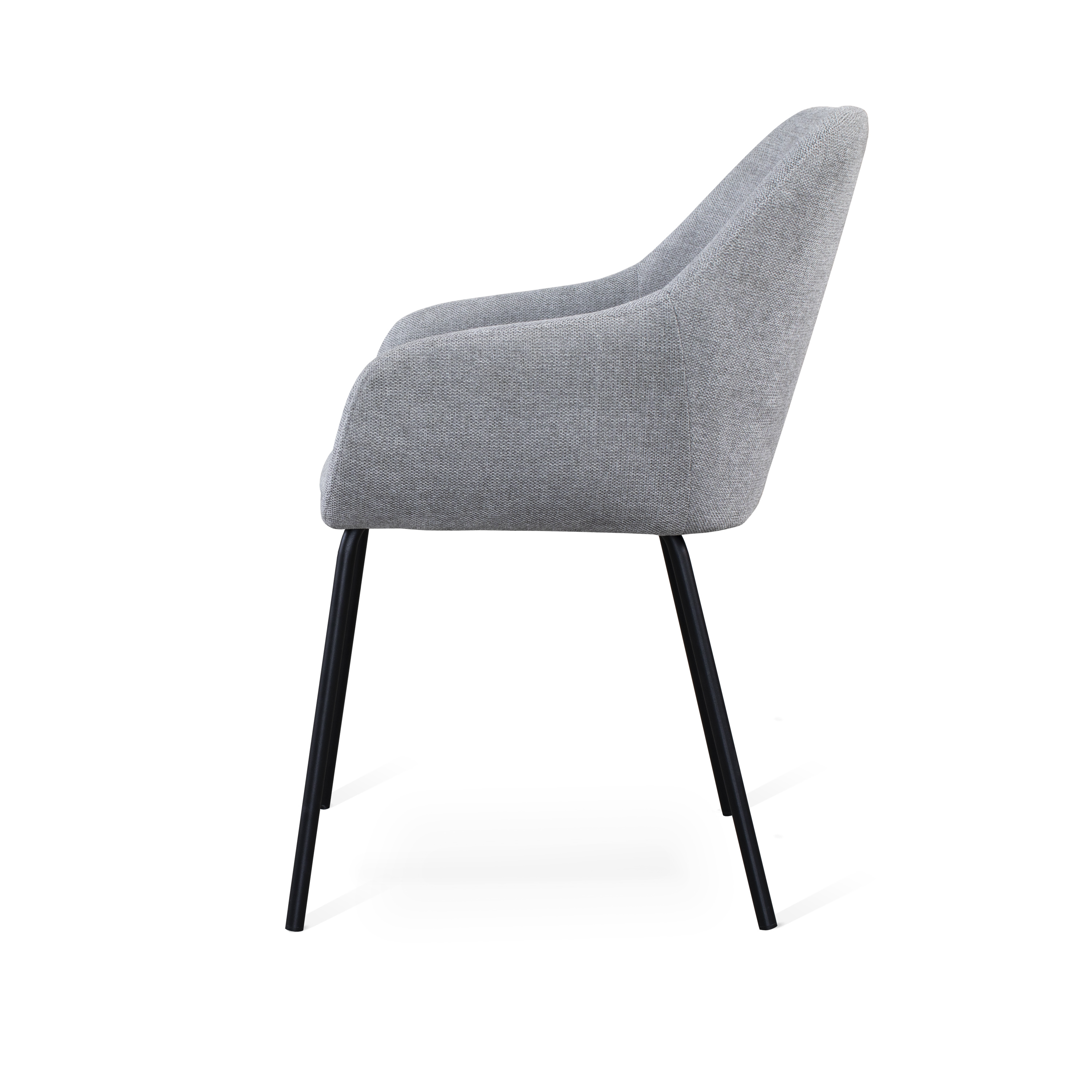Navo stol är helklädd i tyget Frida ljusgrå och har svarta metallben.