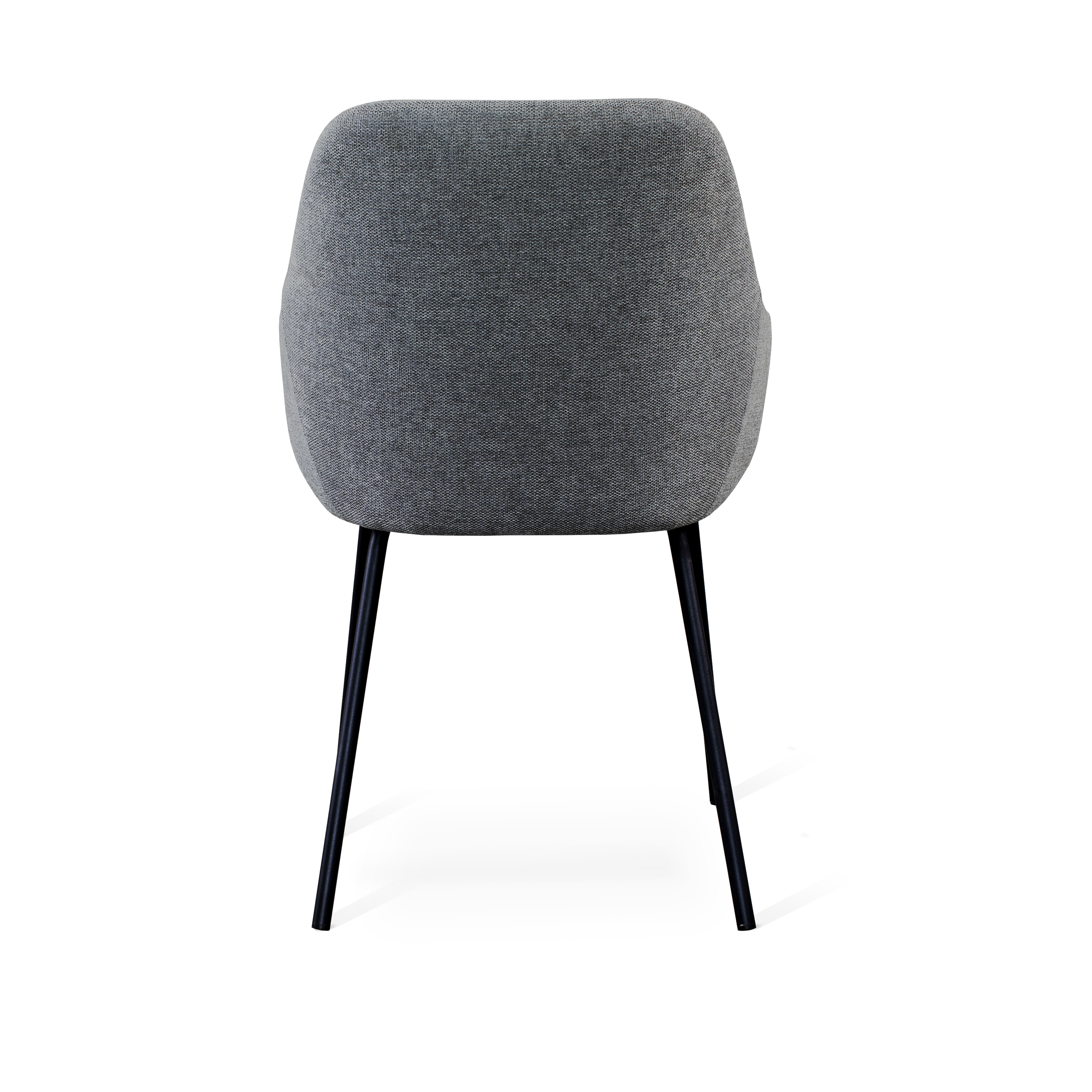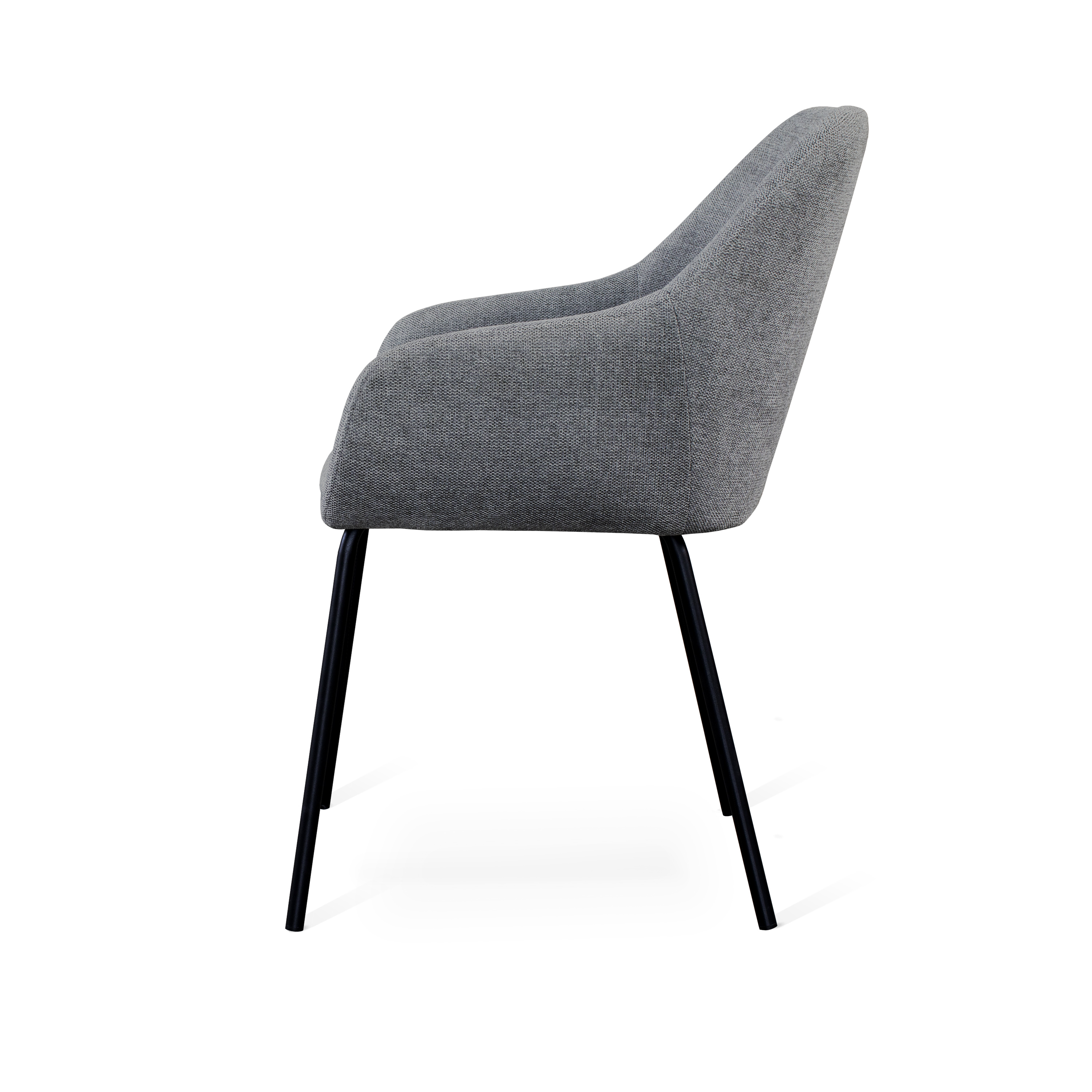 Navo stol är helklädd i tyget Frida mörkgrå och har svarta metallben.