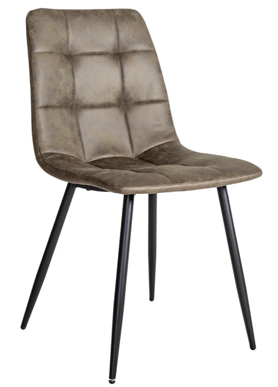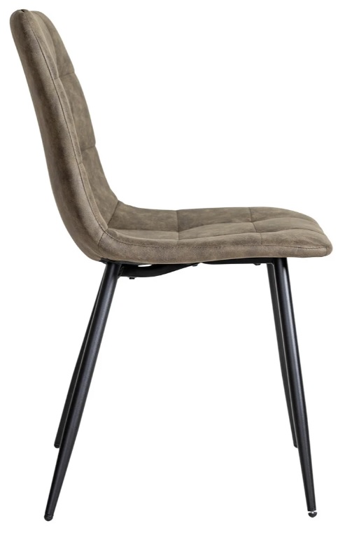 Stolen har en robust stomme och svarta, lätta metallben som skapar en snygg kontrast till det mjuka tyget och gör stolen