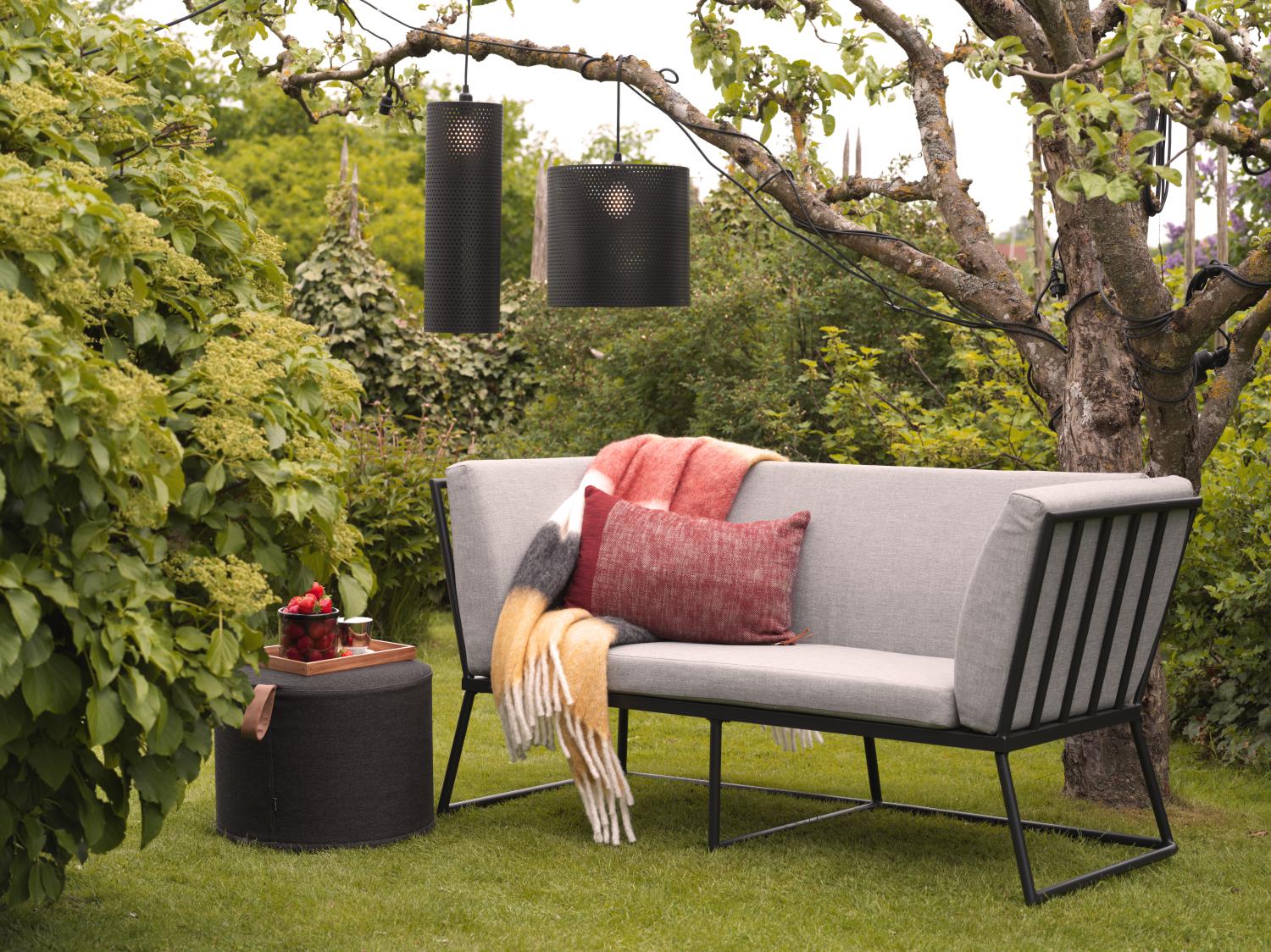 En stor kudde i 100% bomullsgarn med lineffekt. Du väljer mellan färgerna mörkgrå och beige, båda med en dekorativ bård. Innerkudde ingår.