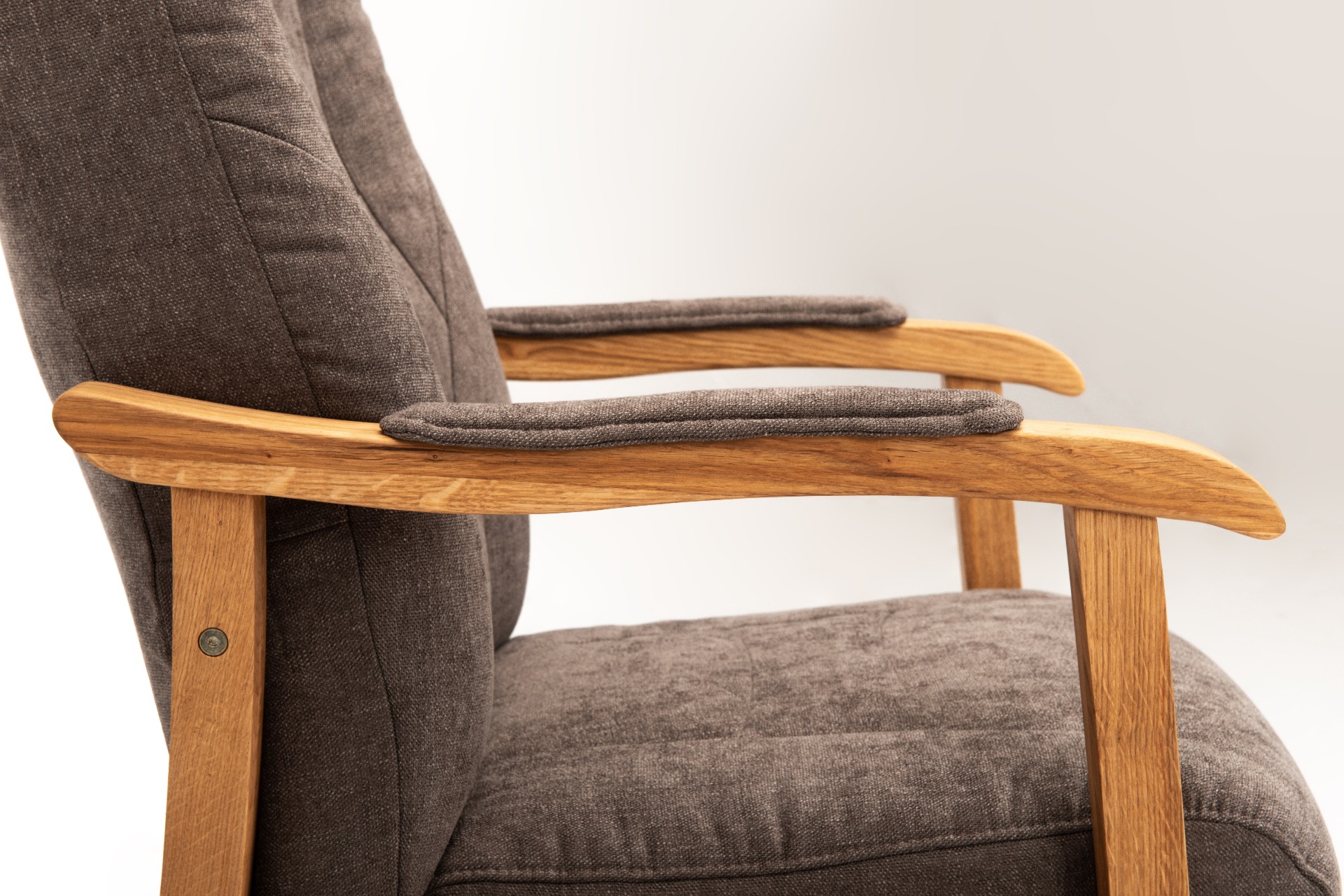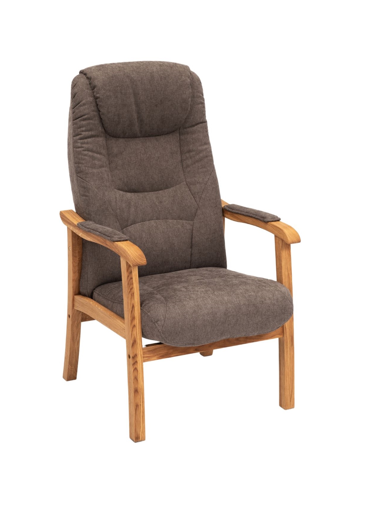 Med sin höga sitthöjd och stabila armstöd är fåtöljen utformad för att vara enkel att sätta sig i och resa sig ur.
