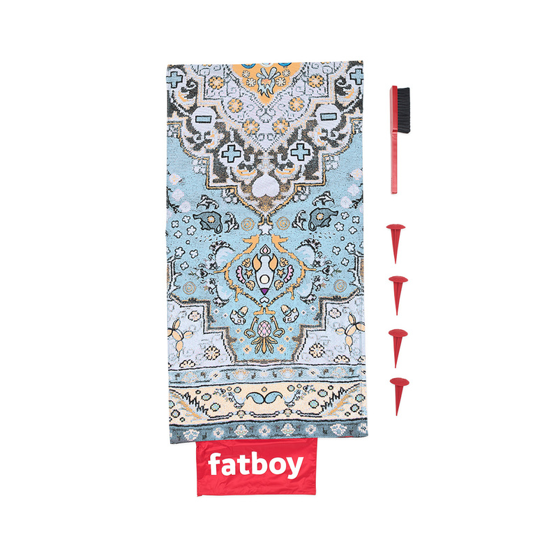Picnic Lounge är en persisk klassiker med en modern Fatboy-twist. Rulla ihop den som en bärväska och cykla till parken, skogen eller till och med en stenig strand; skumfyllningen är en garant för bekvämlighet. Tack vare de extra stora markpinnarna håller sig den här vattenresistenta mattan på plats. Picknickfilten har ett förvaringsfack där du kan ha telefonen och nycklarna och en borste för att få bort sanden.