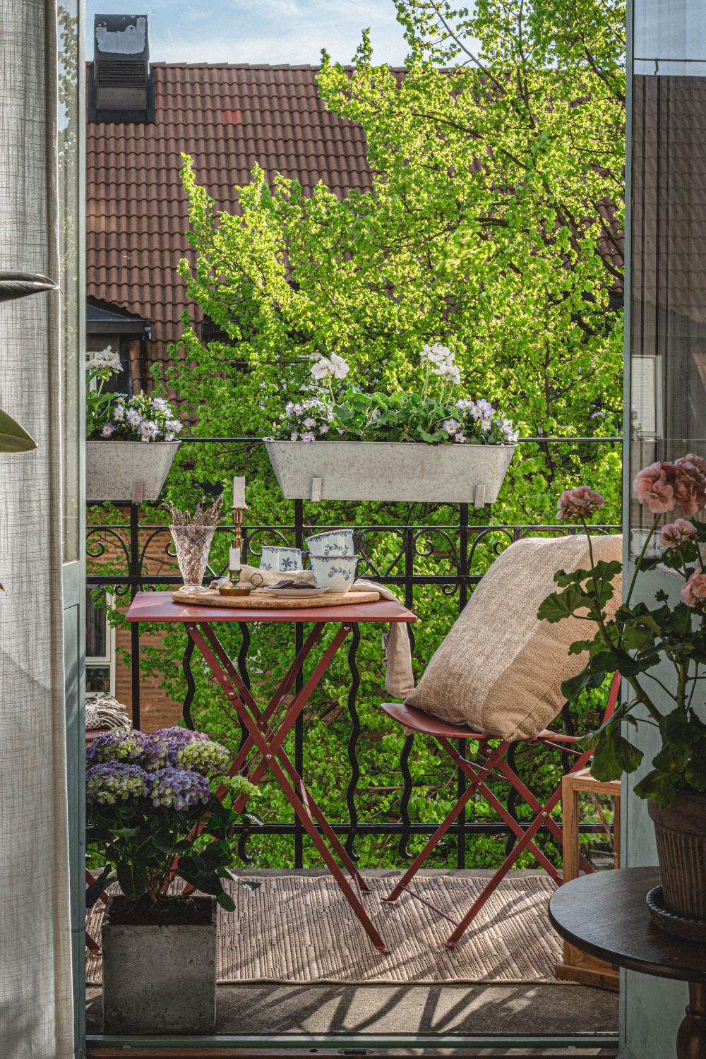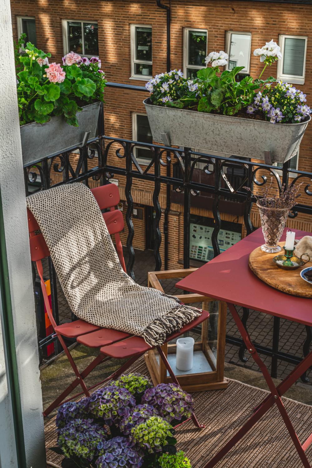 Fällbart set med bord och stolar i läckra färger. Alla delar i lackat stål.