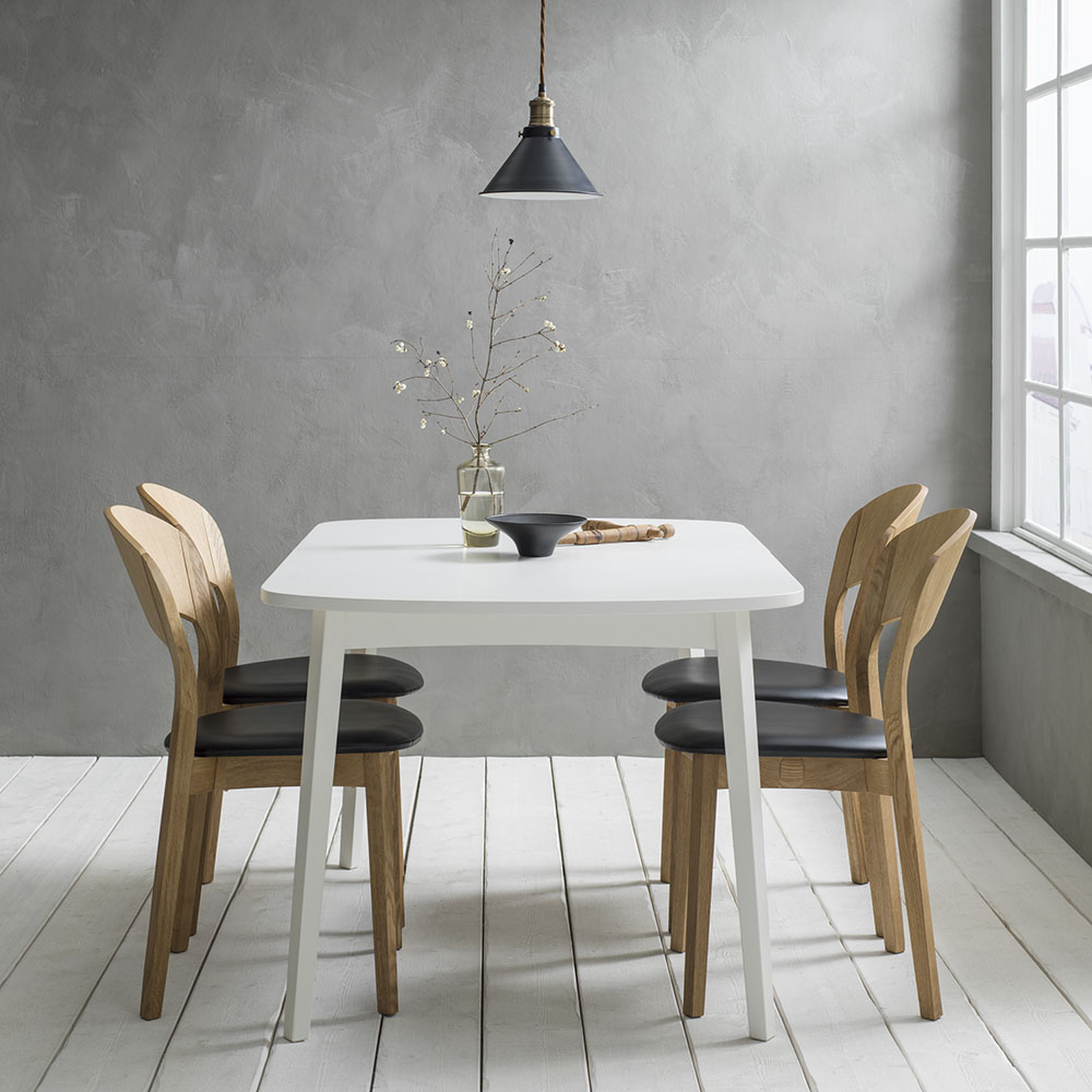 Stiligt matbord helt i massiv ask med rundad toppskiva och raka linjer på de snedställda benen. Utsökt design av Markus Johansson!