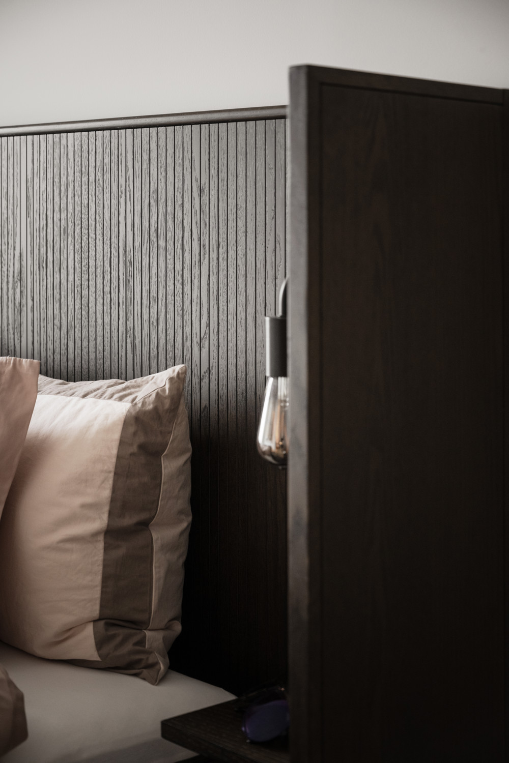 Redmond sänggavel är både elegant och exklusiv vilket ger dig en härlig hotellkänsla i ditt sovrum. Kombinera sänggaveln med pendellampor ovanför de integrerade sängborden och inredningsdetaljer i mässing för ett extra lyxigt intryck. Sänggaveln har ett dekorativt ribbat mönster i fin brun nyans och kan gärna placeras tillsammans med Clearbrook förvaring som har samma färg och vackra mönster. Redmond sänggavel passar perfekt till sängar som är 180 cm breda. Tack vare de justerbara metallbenen kan du själv välja höjd på sänggaveln, från 126 till 150 cm. Beslag för att fästa sänggaveln i väggen medföljer.