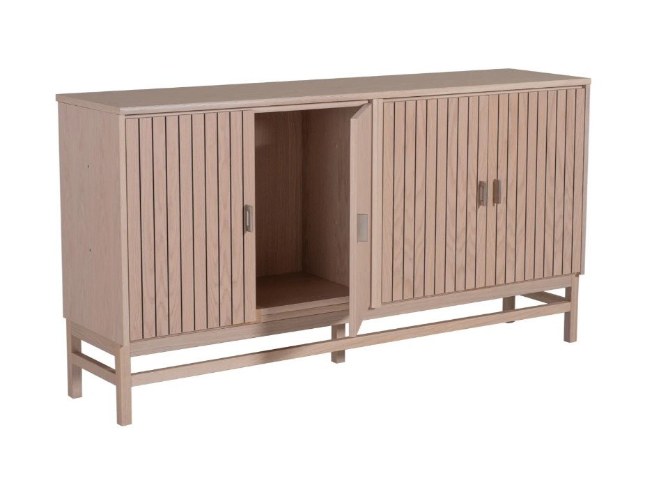 Skänken på bilden är i vit ek med högt benstativ och dörrar enligt följande kombination: